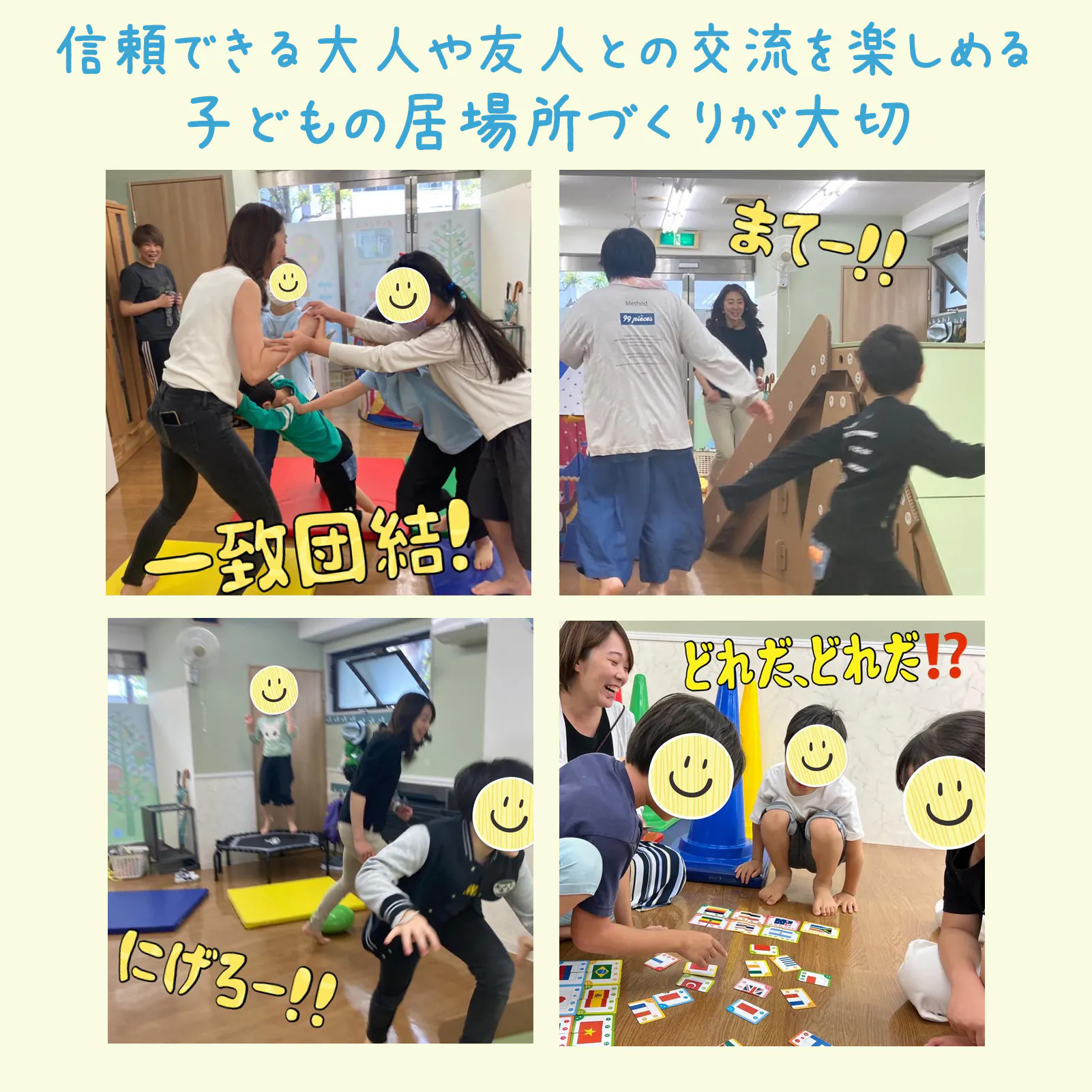 ②遊びを通して、他者と繋がる楽しさを感じること。身体を思い切り動かして発達を促していくこと