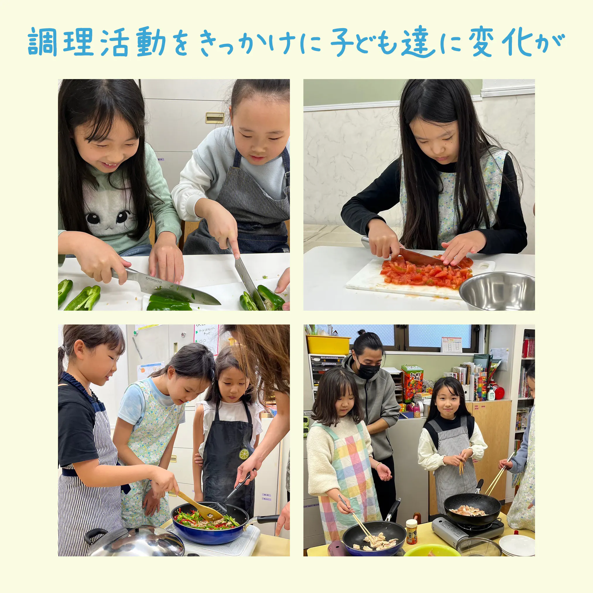 子ども達の教育に調理活動を取り入れることで、自分で作ったものだから嫌いでも食べてみる、今まで食べたことのないものに挑戦するということが可能になってくることを経験しました。