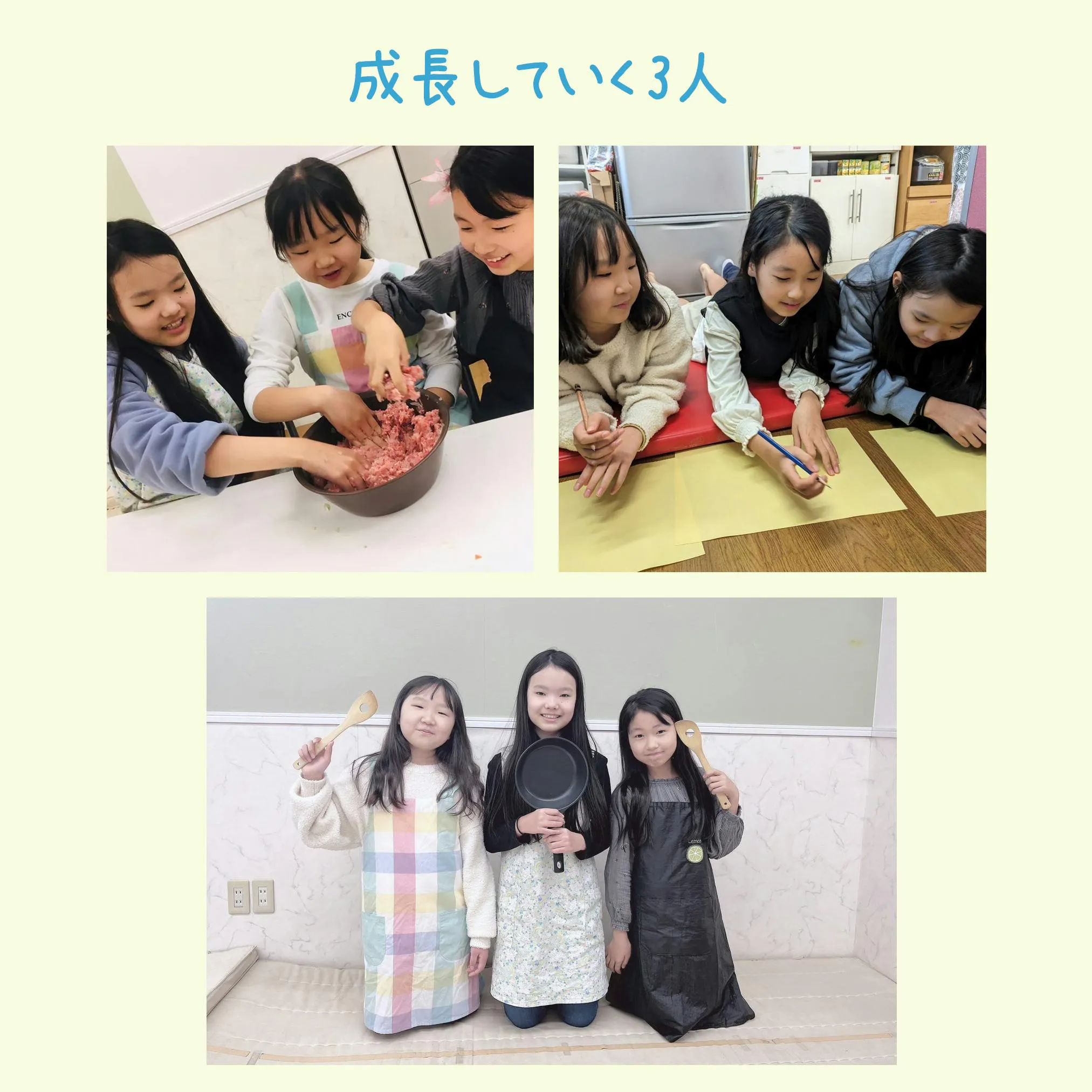 様々な経験を積んでいく中で、「自分っていいじゃん!」を実感している様子です。 高学年女子3人なので、女子特有のナイーブな問題も出てきます。