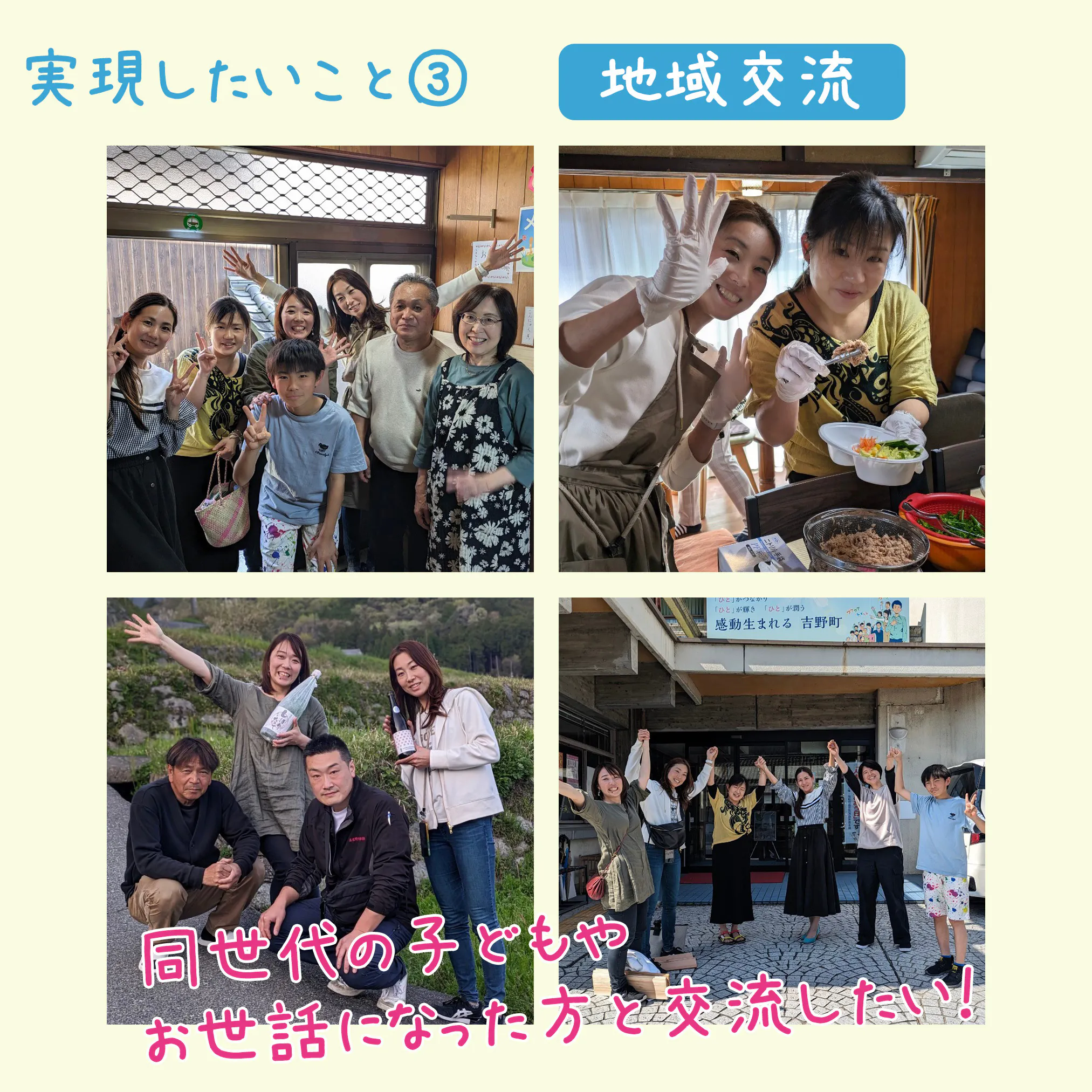 ③吉野で自分たちと同い年くらいの子どもやお世話になっている地域の方々と交流したい!
