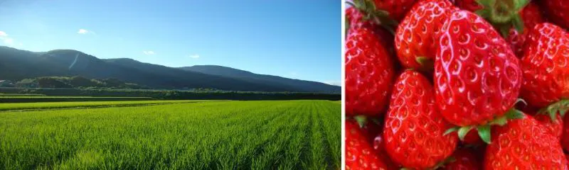 米や苺の生産農家と直接お会いし、自社の理念を理解して頂いた上で素材を提供して貰う事で、地産地消にも取り組みながら安心、安全なお菓子の提供を可能とします。