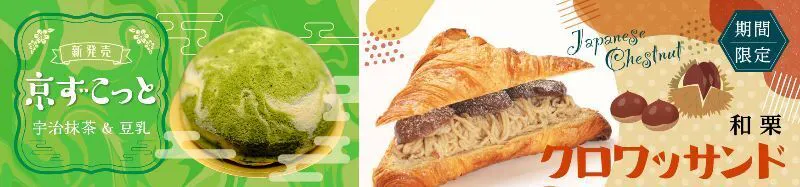 和栗クロワッサンドは、発酵バターを使用したクロワッサンで、和栗クリームをサンドし明日。毎年秋限定の人気商品です。