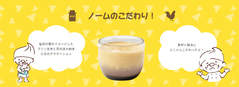 そんな亀岡の特徴でもある「丹波霧」をコンセプトとする商品を創出したいと思い、丹波地方の材料である丹波大納言小豆を使用したプリンを考案しました。