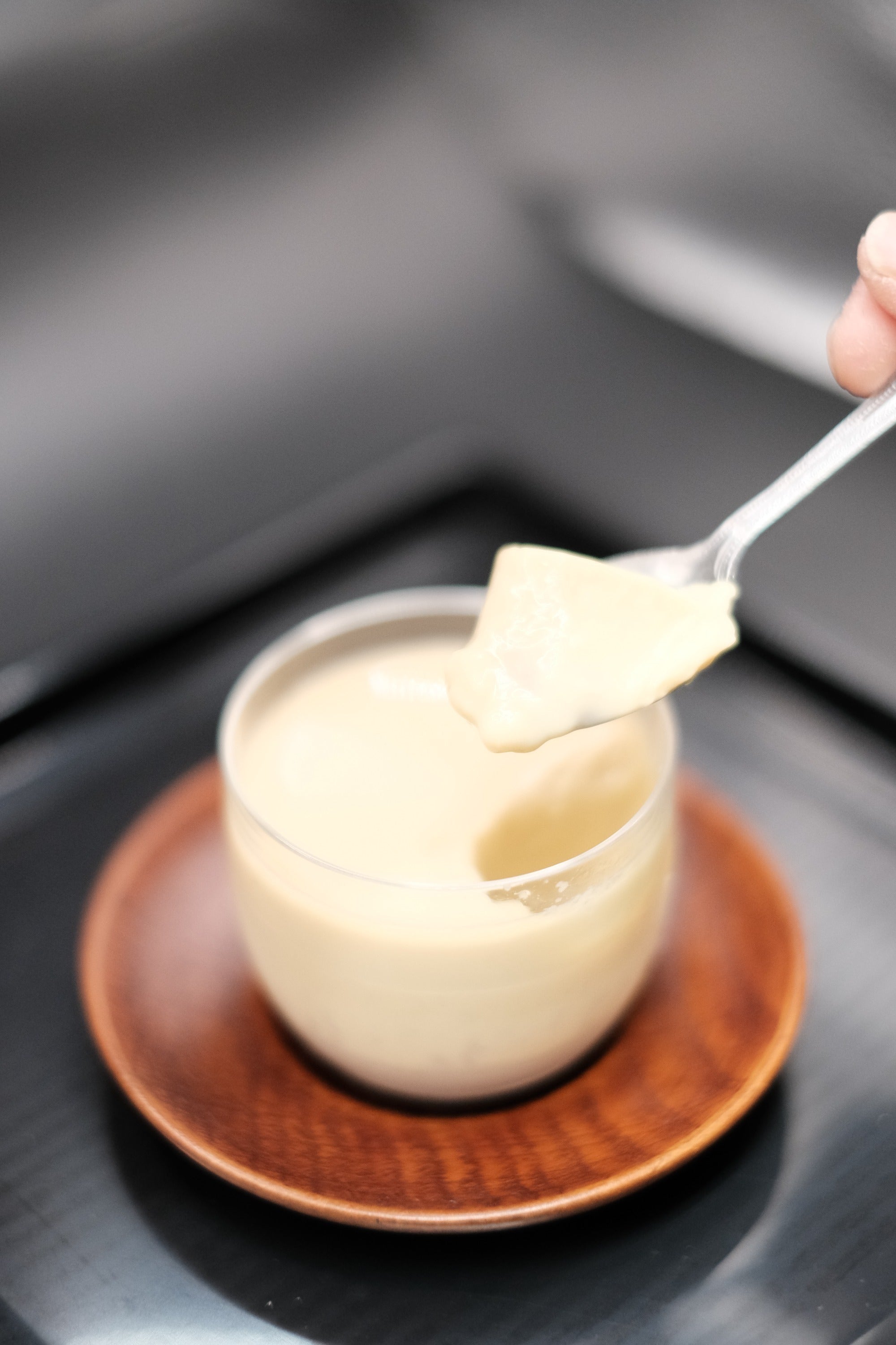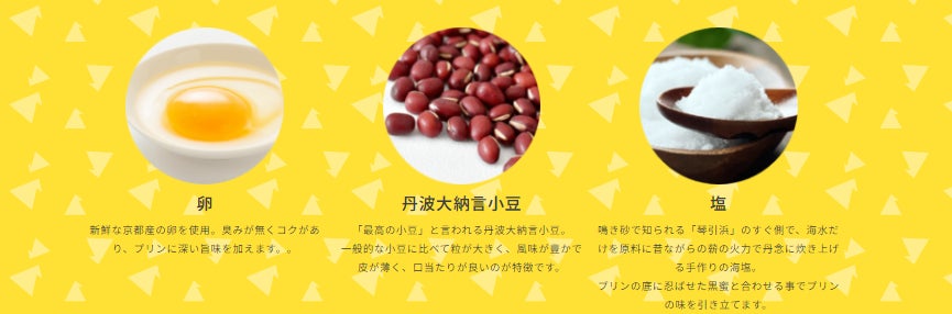 それを餡にし、プリンに入れ込みました。滑らかな食感のプリンと餡の上品な甘みと香りを楽しめる作りとなっております。又、京都産の卵を使用し、底にはカラメルでは無く黒蜜を忍ばせました。黒蜜にはアクセントとして京丹後の琴引浜の塩を使用し、プリン一つで京都を楽しめる一品です。