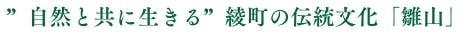 先人たちが紡いできた歴史を、「雛山」という綾の伝統文化で華を添えられたらと思っています。