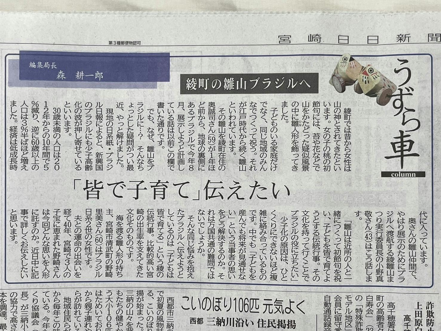 地元、宮崎の新聞に記事が載りました。