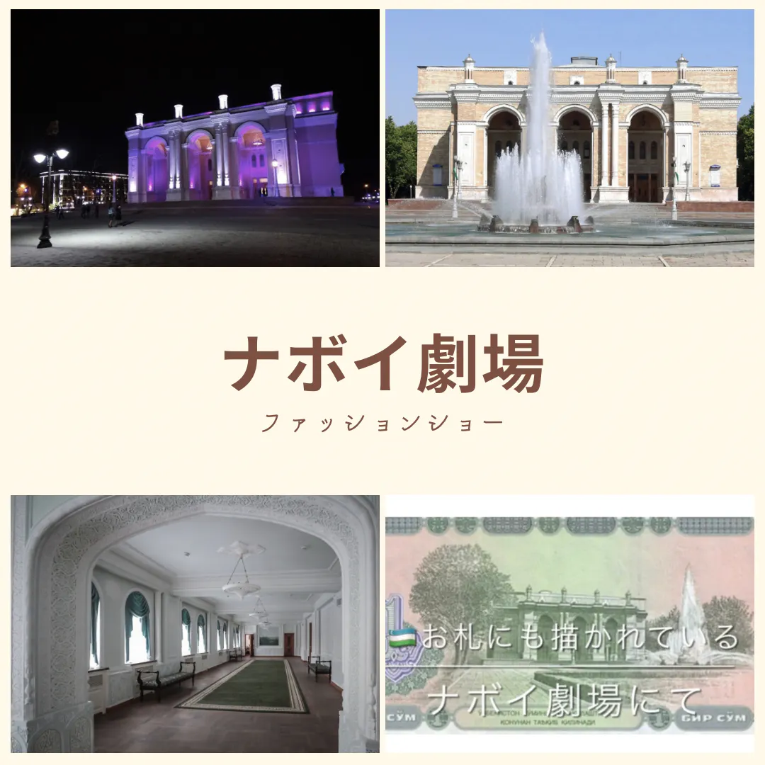 お札にも描かれている「ナボイ劇場」は、オペラやクラッシックバレエのための劇場です。今回は特別に日本とウズベキスタンの国際交流を初の試みとして、この歴史ある劇場で“日月国際交流ファッションショー”が開催されます。