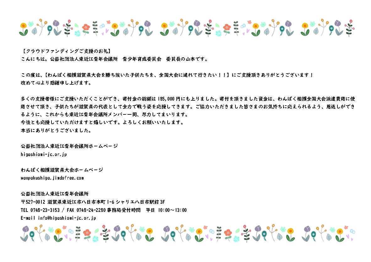 この度はご支援、応援頂きまして誠にありがとうございました。