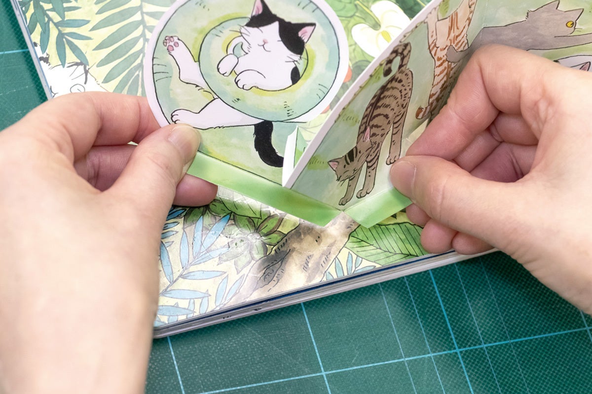 「猫と愉しむ飛び出す絵本」は一般的な仕掛け絵本ではありません。ページをめくるたびに愛猫がドキドキ、ワクワク!ついつい手を伸ばしてしまう仕掛けをプラスしました。いつもは禁止している本への猫パンチや猫キックもこの絵本なら大丈夫!