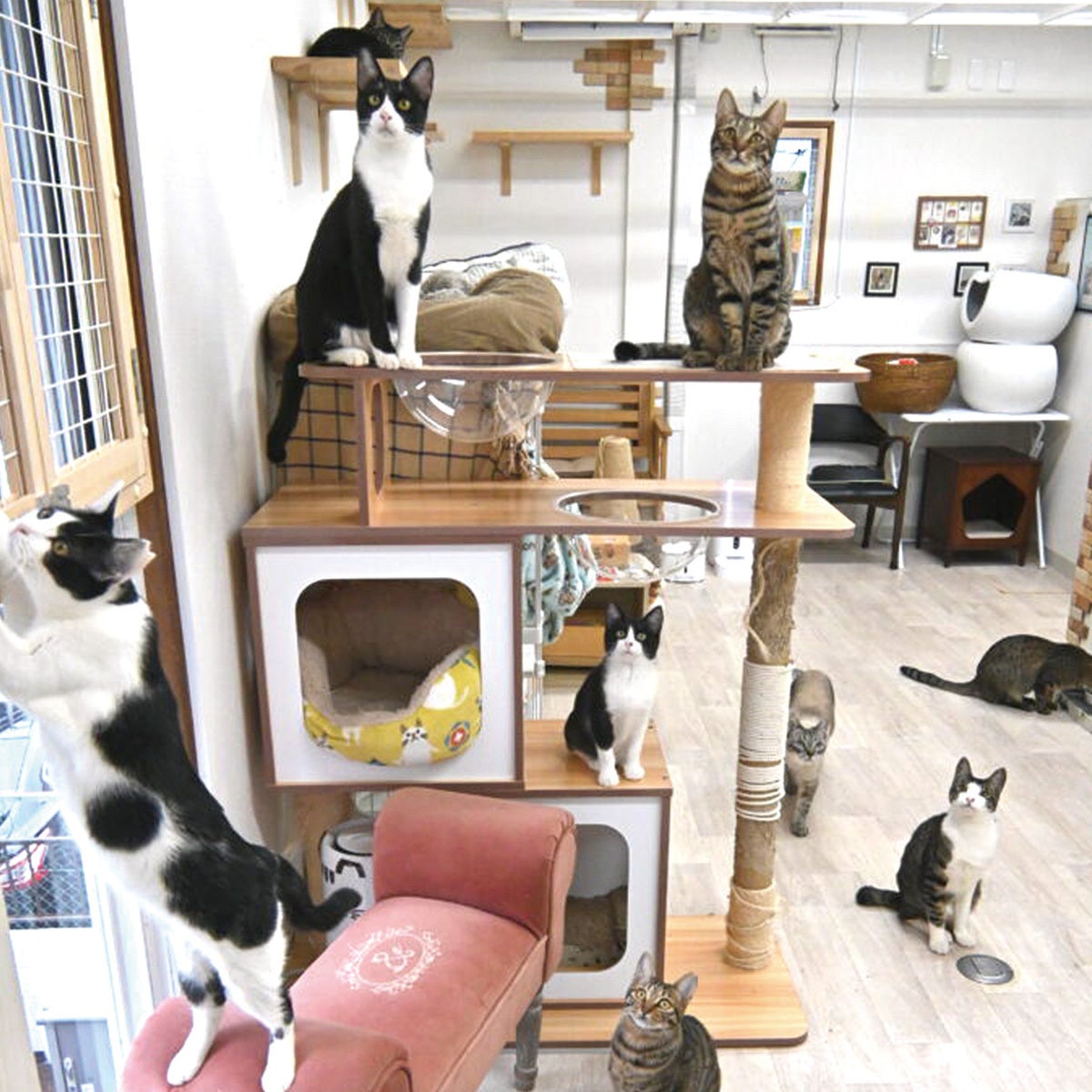 キャッツウェルケアさんには保護猫カフェが併設されており営業時間中はいつでも保護猫たちと会うことができるようになっています。