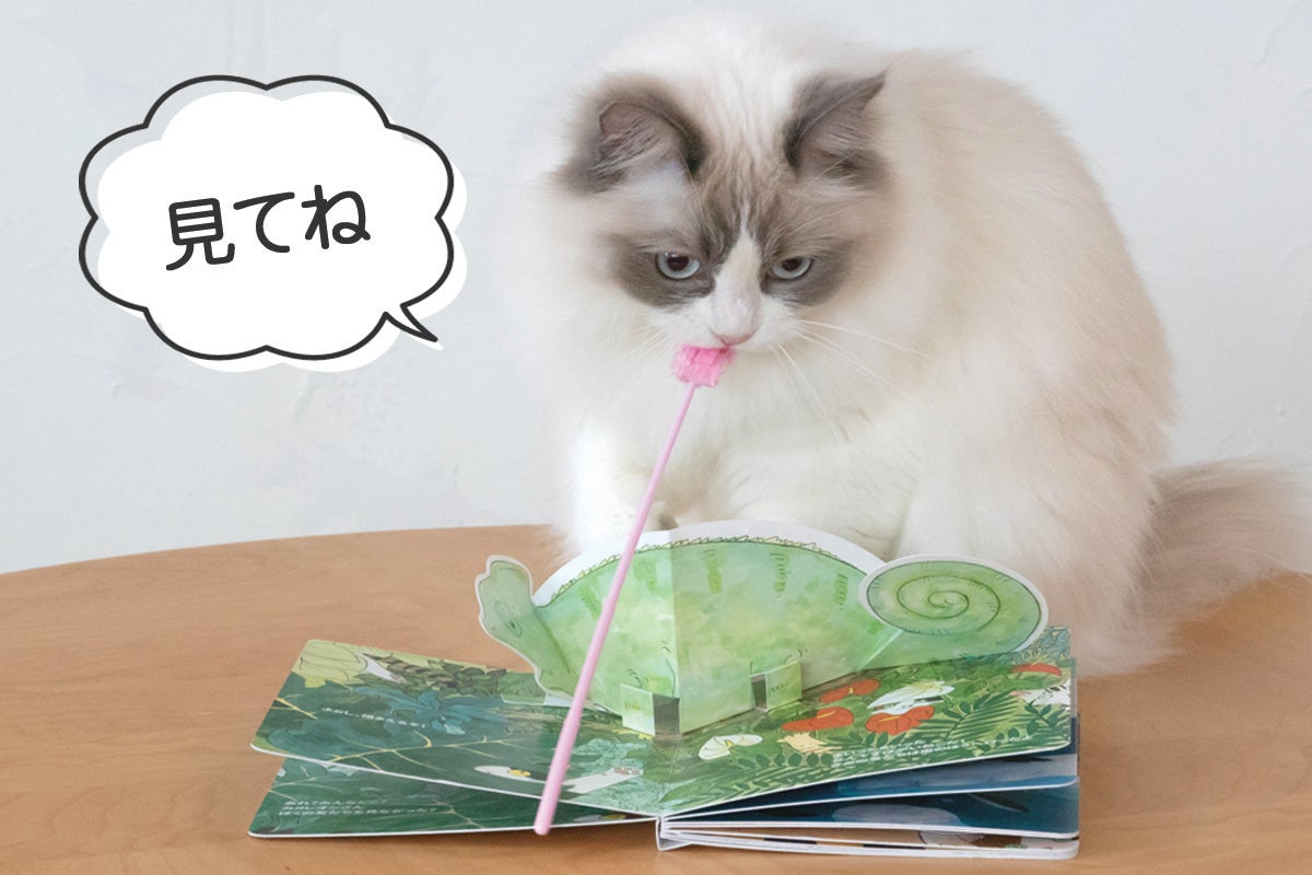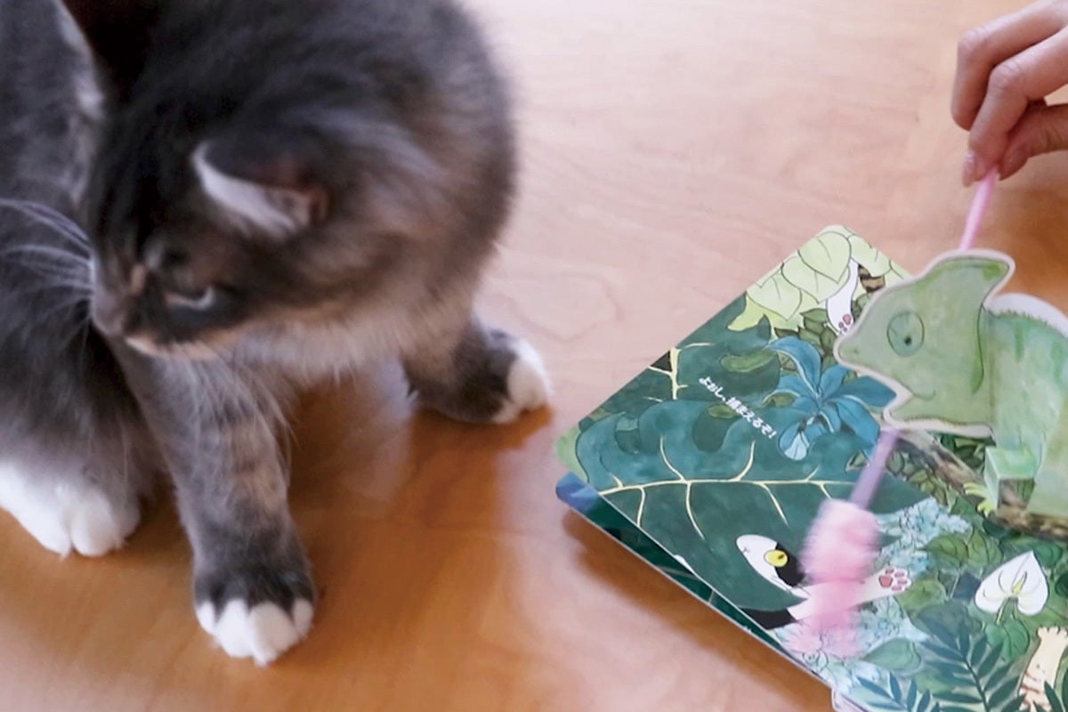 2回目以降は、ねこと一緒に遊びながらお読みください。絵本で遊ぶねこを見ているだけで、飼い主さんも愉しめます。