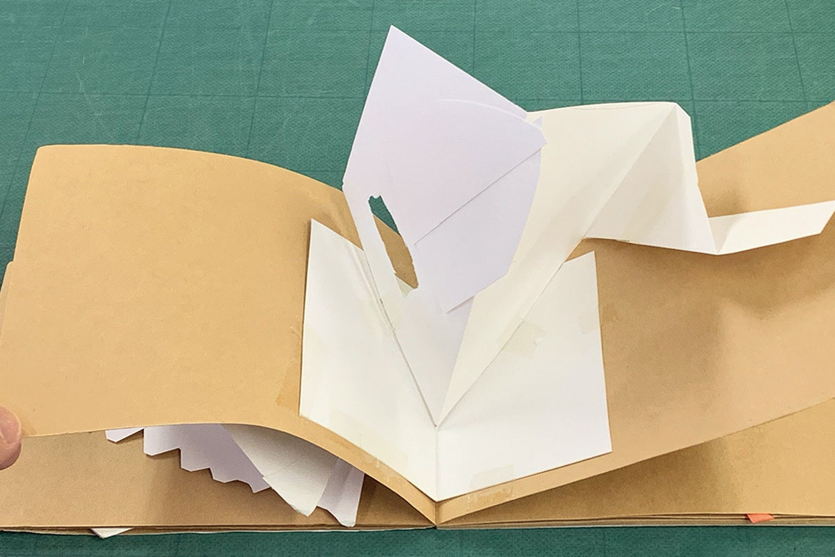 仕掛け絵本の仕掛けは1点1点手作業で貼られていることを。