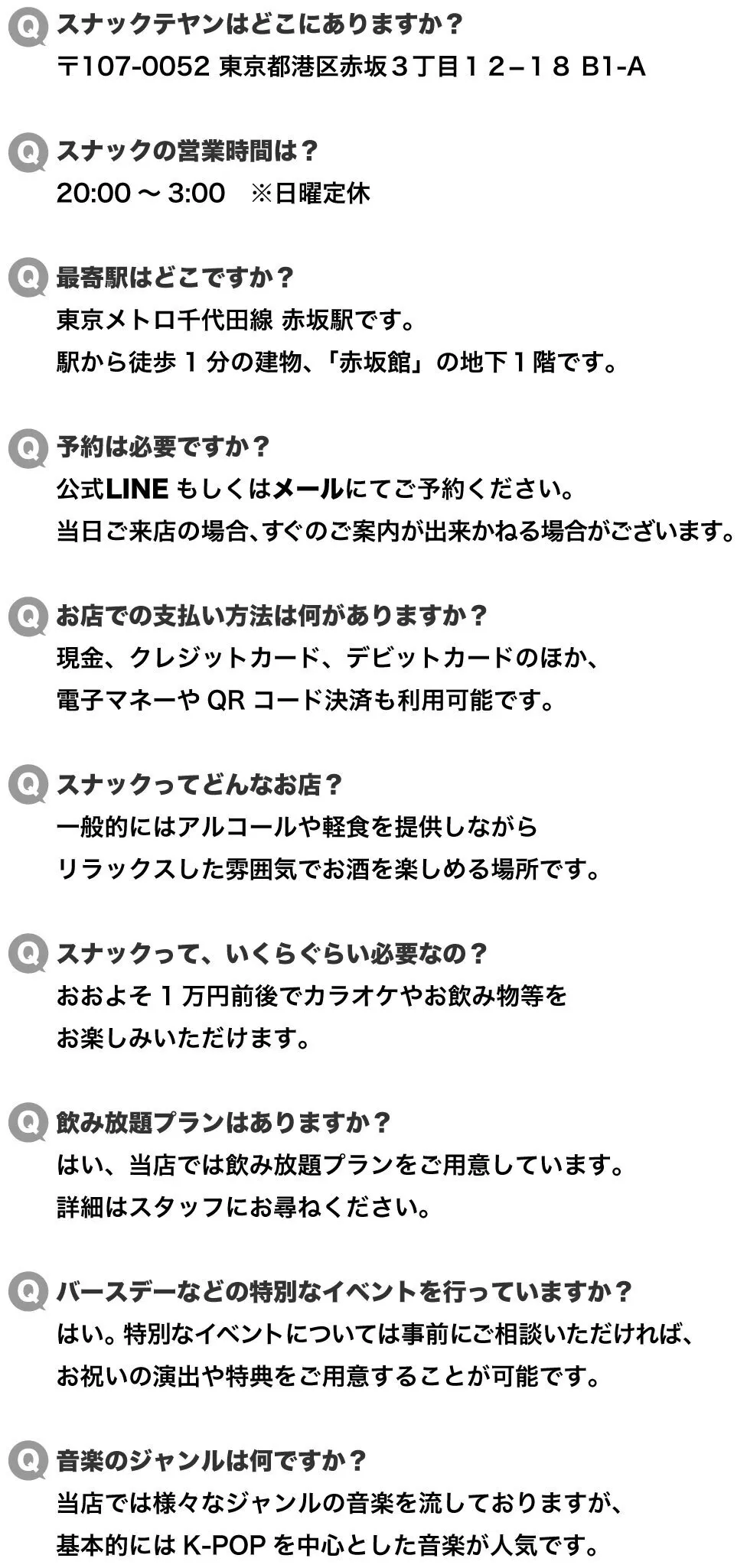 こんにちは。こんばんは。初めまして。スンギです。ムーディーでおしゃれ!大人っぽいセクシーなお店。麻布十番・紹介制の【スナックテヤン】、赤坂にオープン!皆様により気軽にお楽しみいただける様、赤坂店では一般店舗として展開しております!限られたお客様のみが体験できた楽しみを、すべてのお客様へお届けします!スナックテヤンのママで私の姉:リエ、スタッフと共にお客様のご来店をお待ちしてます!