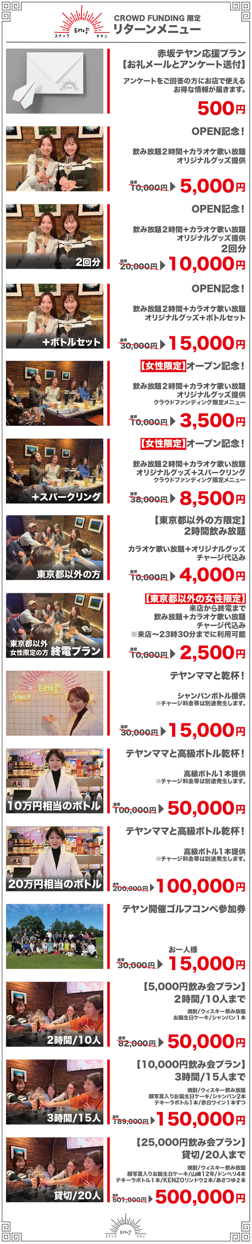 【スナックテヤン】が初めての方から、赤坂の新店舗を堪能したい方まで。全く新しい「一期一会」の出会いがあるかもしれない!そんな素敵なプランをご用意いたしました!