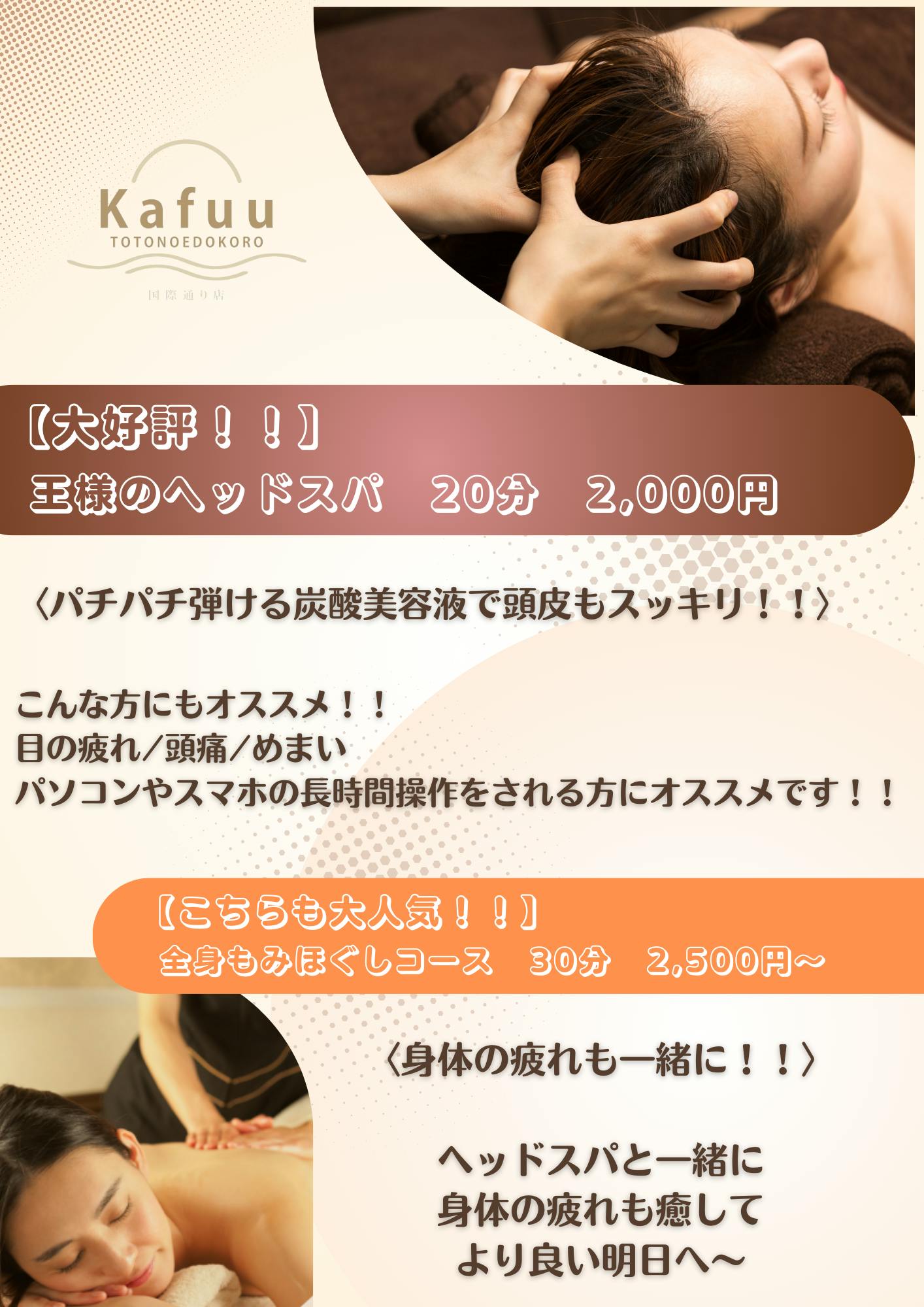 2024/04/23 12:43現在、チラシデータ作成の施策を打ち出し、ありがたいことに多くの方からご依頼いただいております。チラシデータを作成することで、印刷・SNSでの周知など様々活用できる方法がございます。今回はご依頼の中から許可を頂き、実際に依頼を受けた案件を掲載致します。今回の案件はマッサージ/ヘッドスパを沖縄に行っている起業からのご依頼!!要望はシンプルで読みやすく、少しインパクトを出してほしいとの要望でした。打ち合わせをし、ご希望に沿ったデザインを提出、満足いただけました。また、コンサルタントとしての案件も獲得でき、今後の事業提携も視野に入れております。SO STYLE大久保 もっと見る