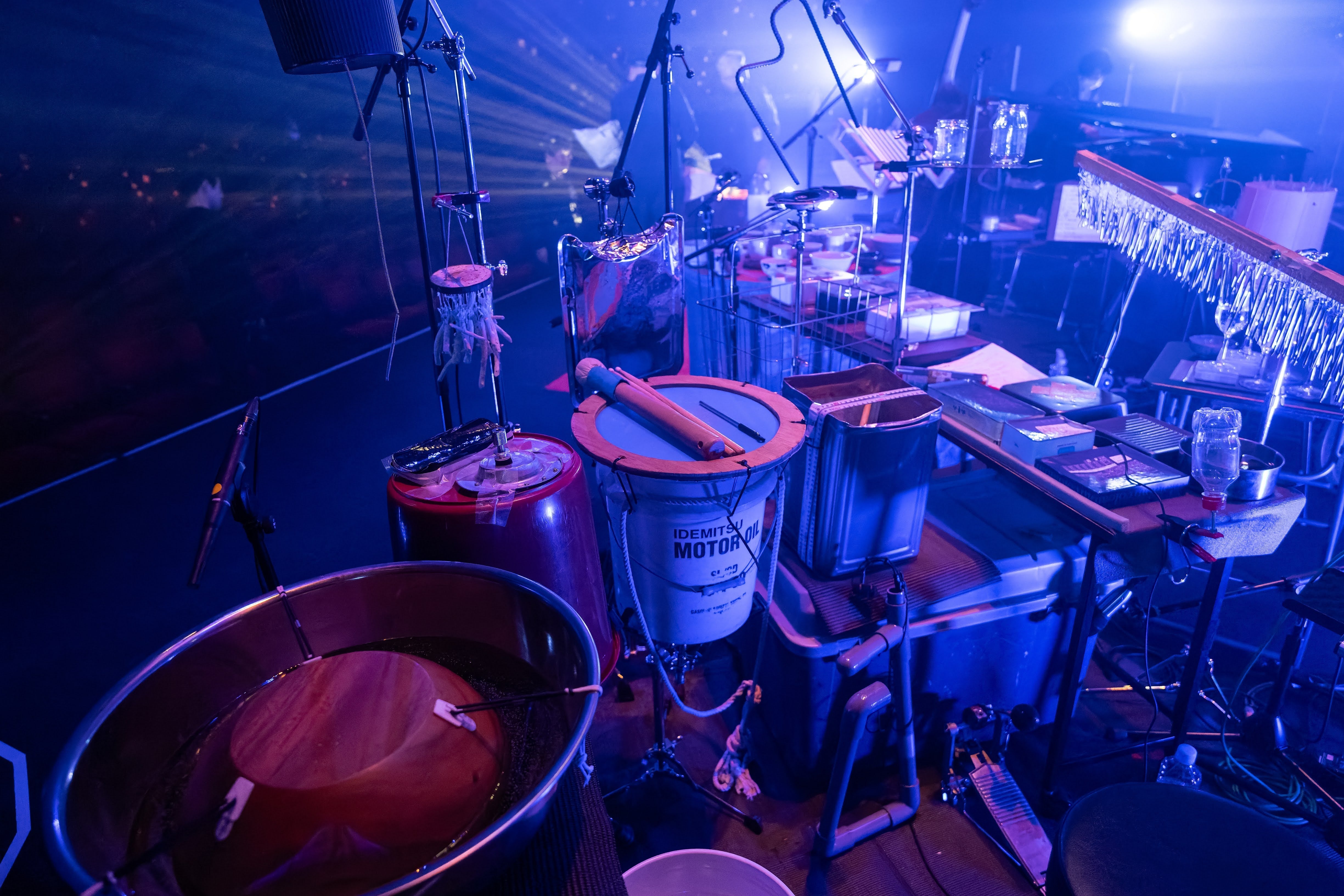 コンサートのために、がらくた楽器もカスタマイズして持ち込んでくれました。