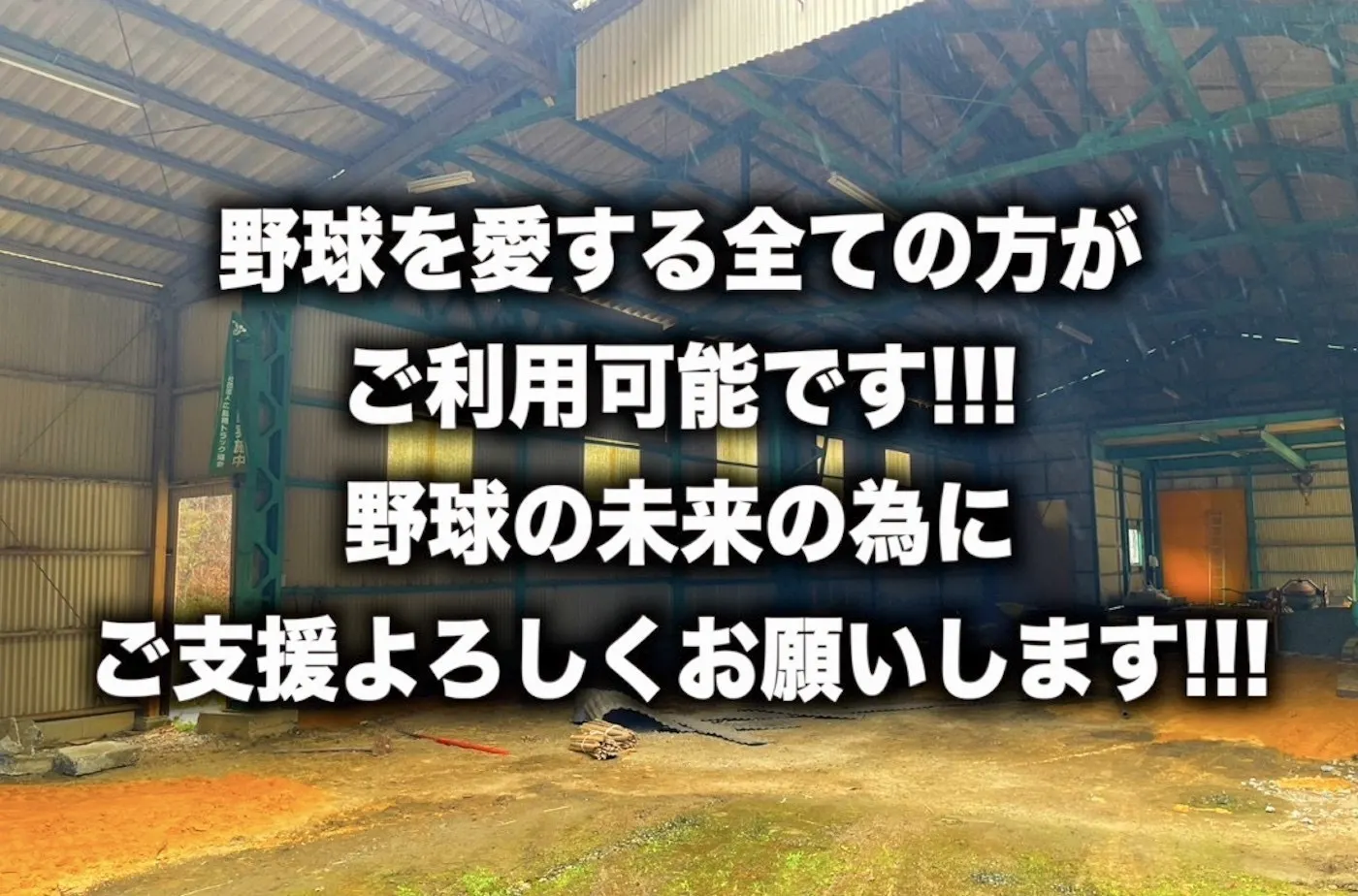 私は広島県府中市上下町に最新機材を揃えた野球の室内練習場を作りたいと考えています。