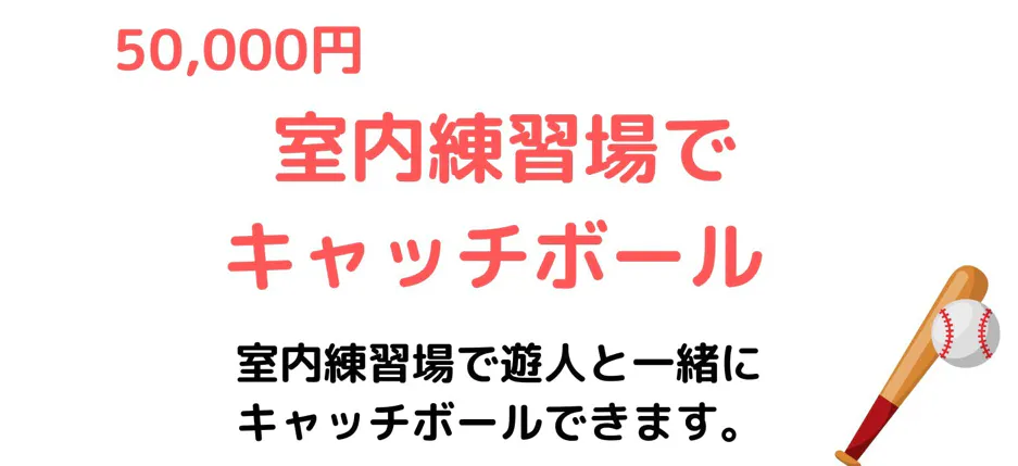 支援者の皆様には、建設が完了した練習場の利用権やお礼動画など、様々なリターンをご用意しています。