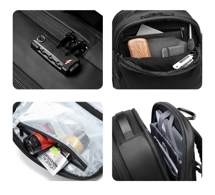背中側には「もしも」の場合に備えたスマホやパスポート、財布など貴重品の収納スペースも搭載しました。