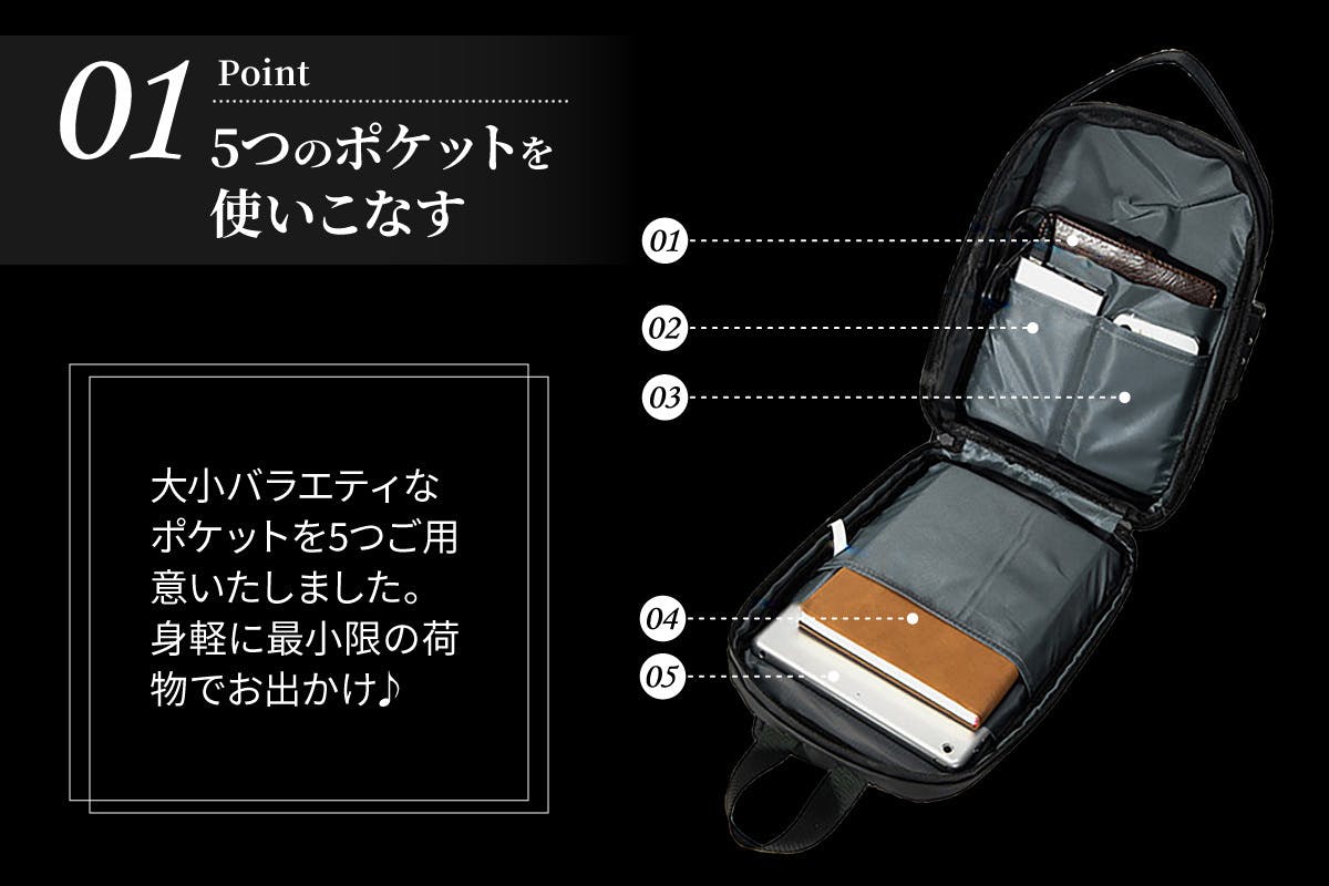 5つの多収納ポケットでどこに何を入れたか一目瞭然!
