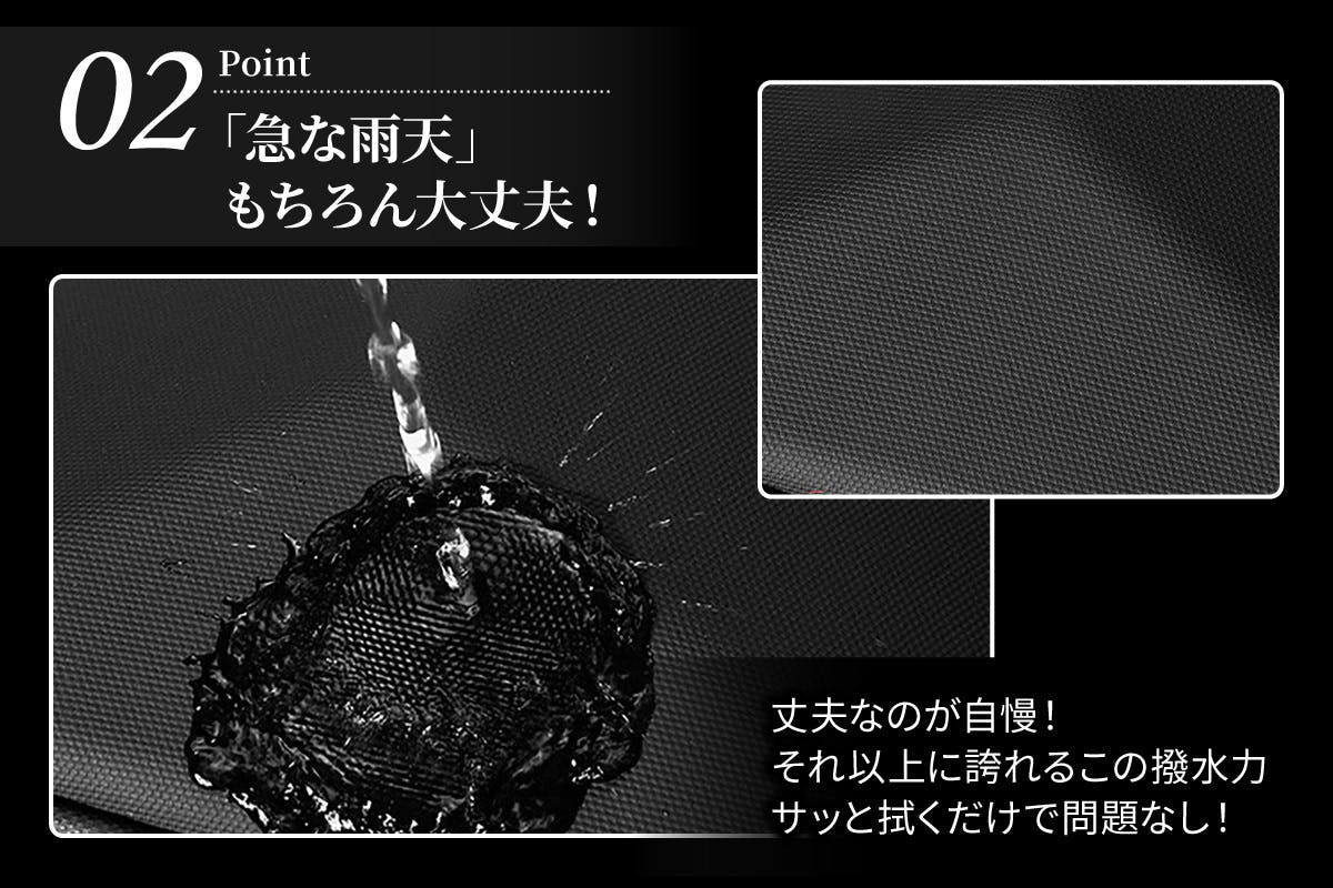 A. 耐水性に優れたナイロン生地で、雨粒をはじいて水の侵入を防ぎます。