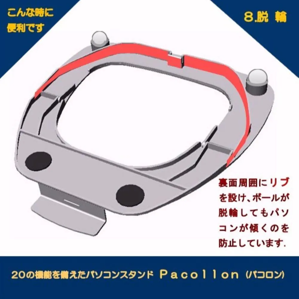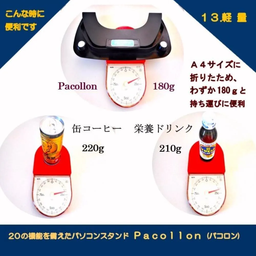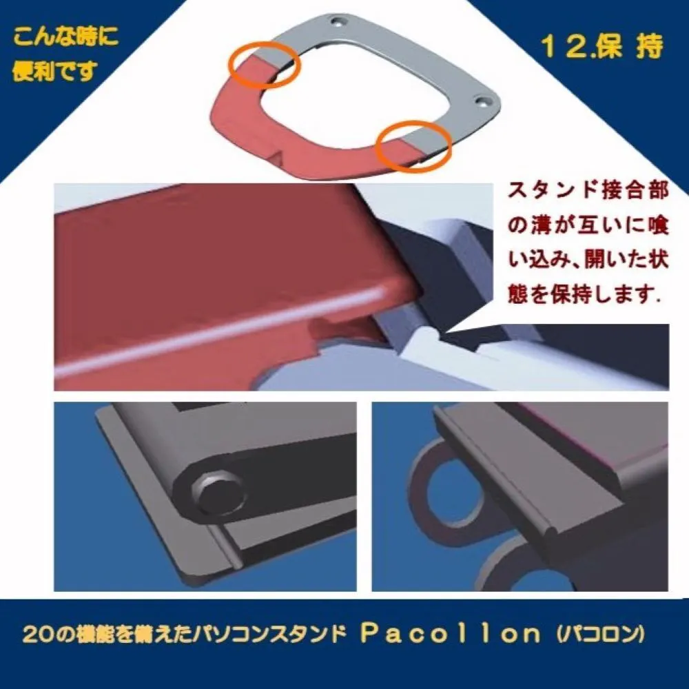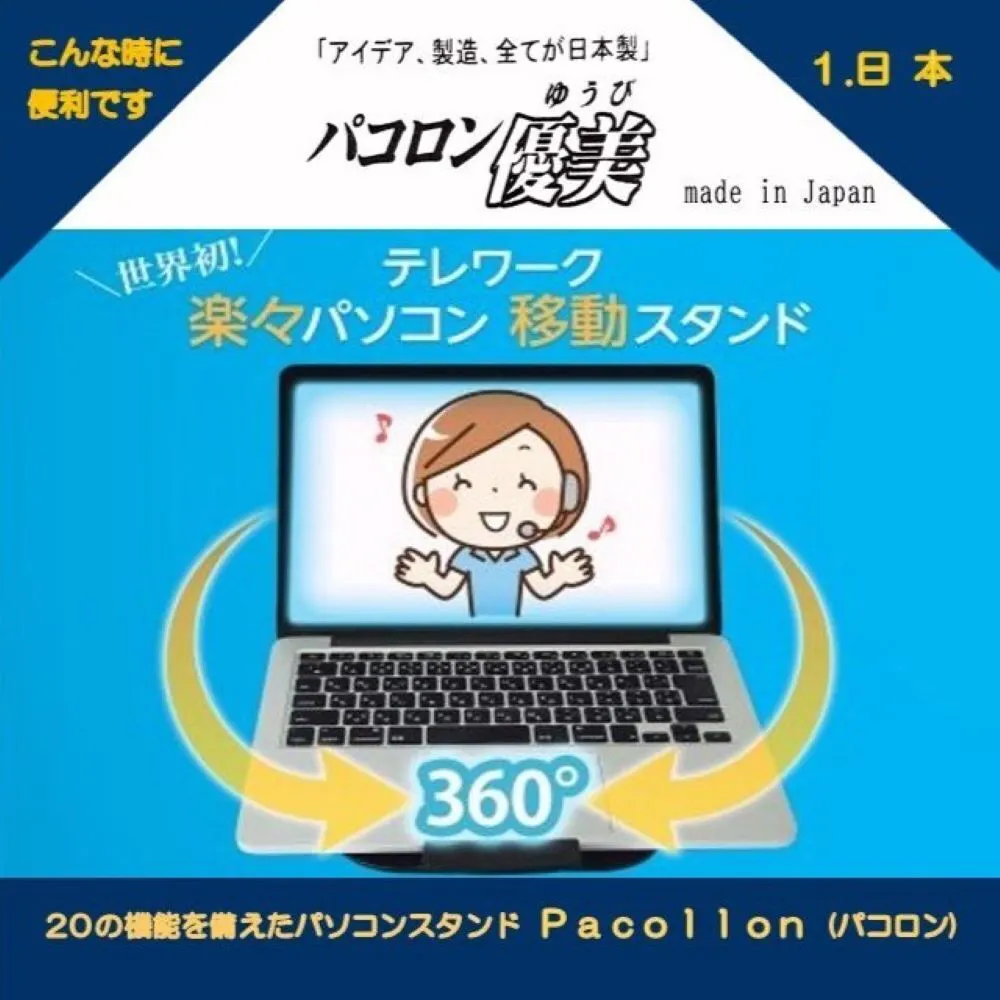 Pacollon(パコロン)は、2013年Windows8タッチパネル式ノートパソコンの操作性向上のため、東京秋葉原で販売を開始しました。手前の取っ手を指先で軽く浮かせるだけで、ノートパソコンを(スタンド下面2ヶ所に取り付けたボールベアリングにより)サッと手前に引き寄せることができ、タッチ操作が楽に行えます。2020年世界的なコロナ肺炎の流行に伴い、秋葉原でも閉店する店舗が相次ぎました。このため、販売形態を大手通販サイトへ移行いたしました。これに伴ない、生産工場を台湾から日本国内に変更し、“Pacollon” ブランドとして立ち上げました。2023年発売10周年を迎えたのを機に、全国の大手量販店の実店舗で、展示・販売を開始いたしました。