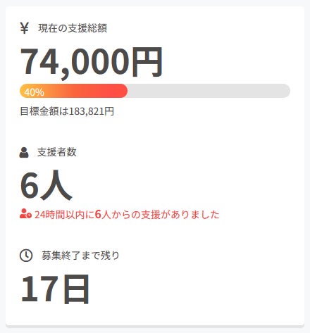 現在の調達率は40%、パトロン様は6名となっております。