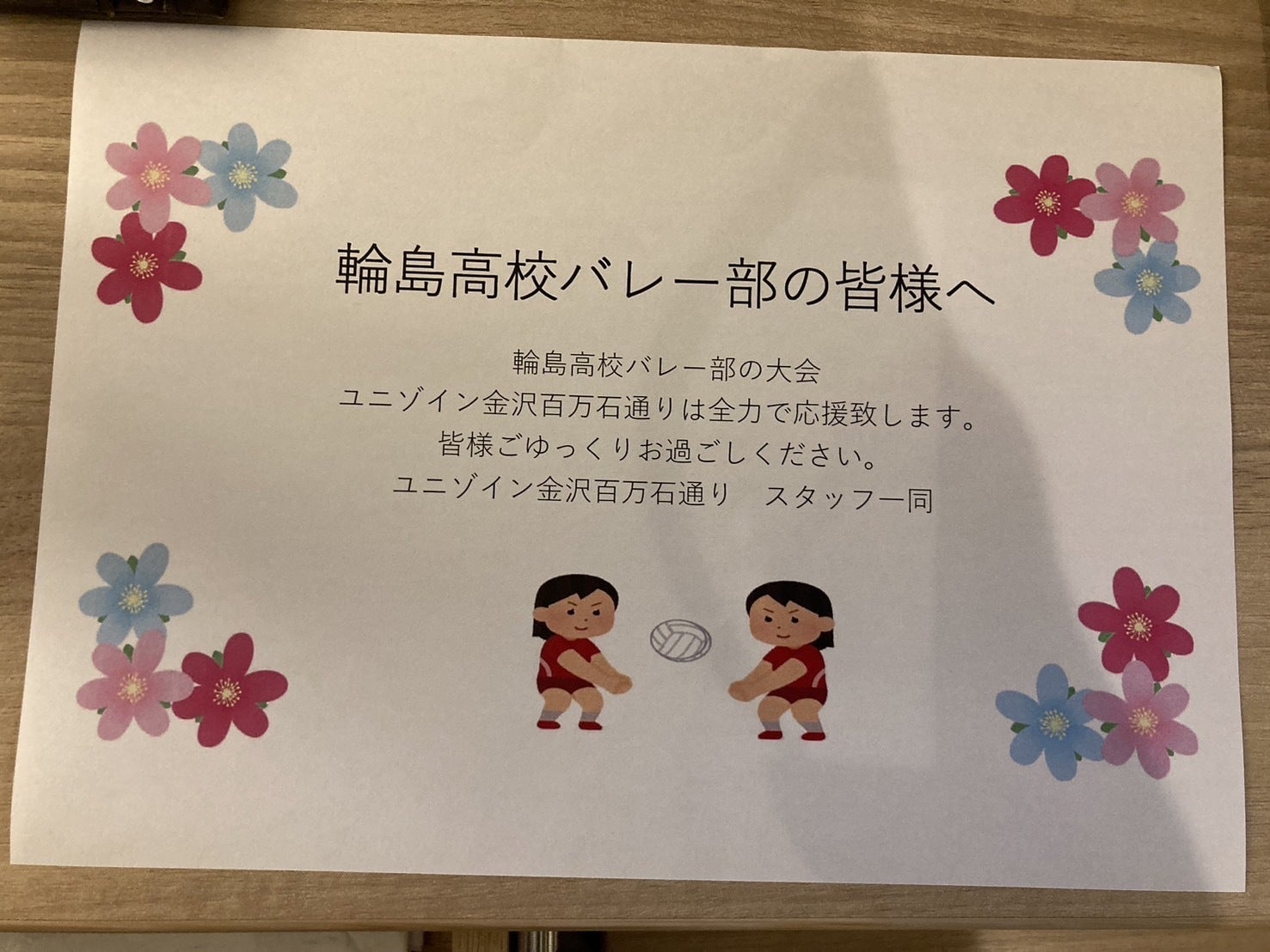 あと、チェックインの際、この置き手紙を見た顧問がめちゃくちゃ喜んでました( ´∀`)笑