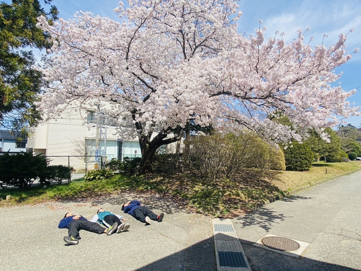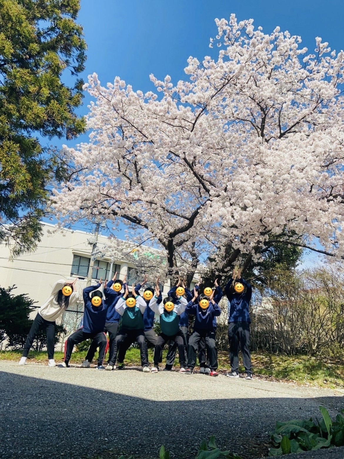 校内の桜の木の下で