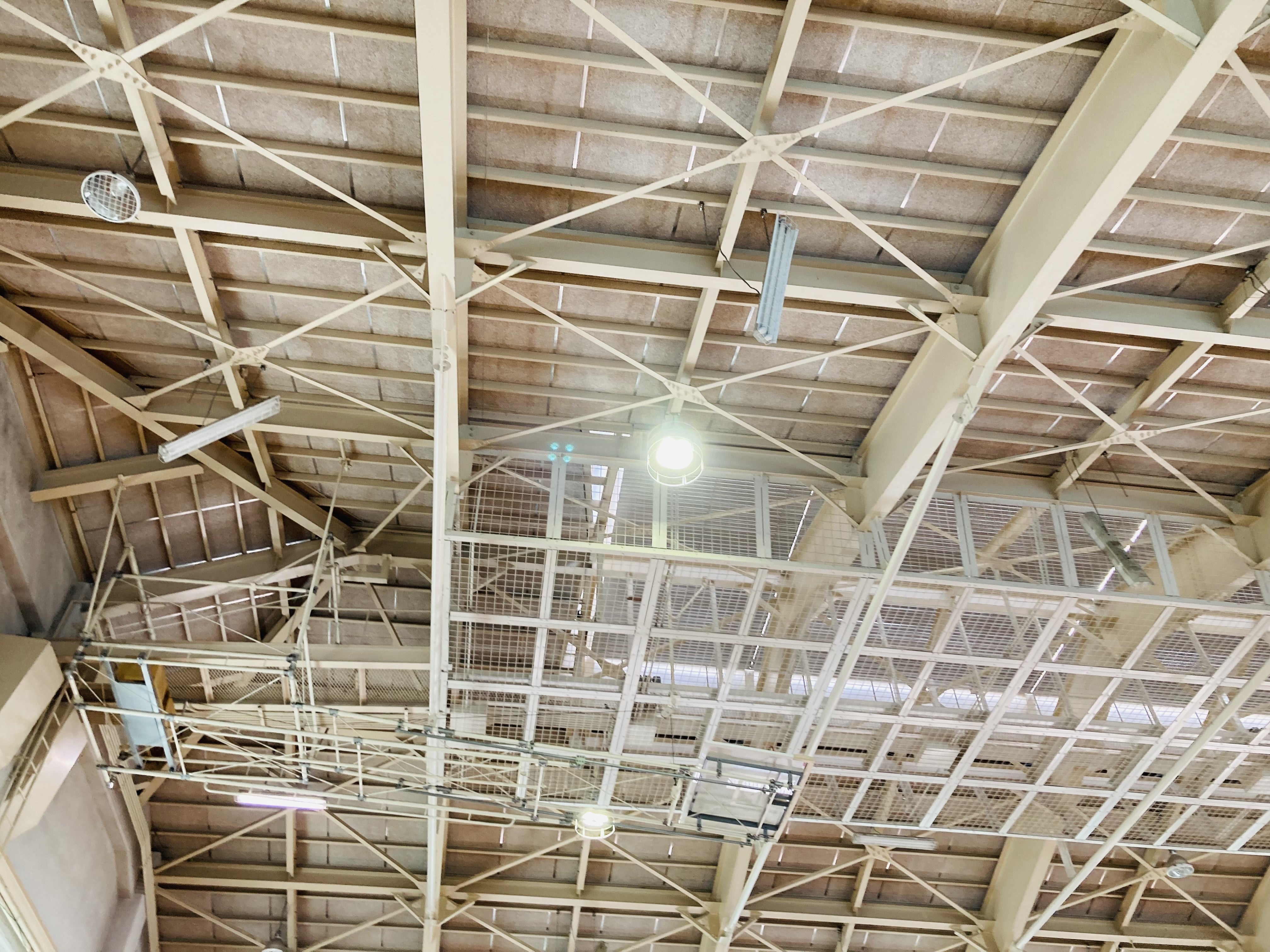 危険区域テープが貼られた体育館