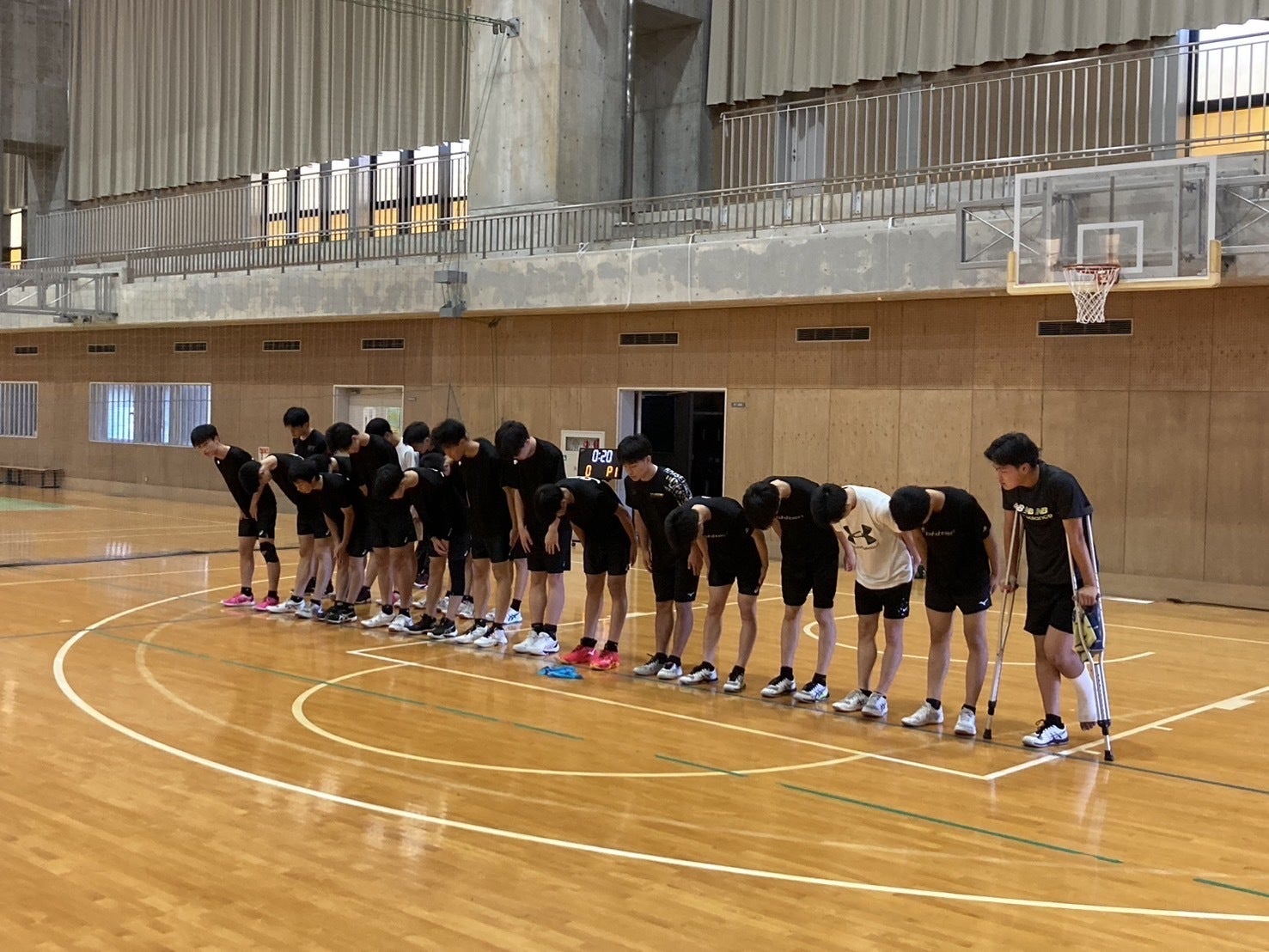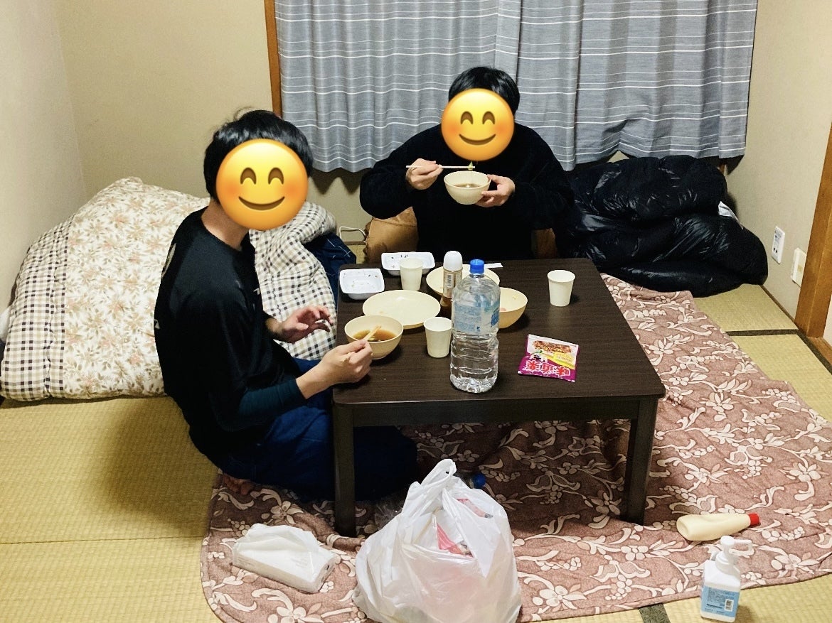 (自衛隊が拠点にしていた体育館)令和6年1月1日、冬休み中に起こった能登半島地震で部員全員が被災しました。全国でも多くのニュースで取り上げられているので輪島市の様子はお分かりいただけていると思います。あの地震で、部員全員が揃って集まることができなくなりました。年末に「また来年もよろしく!」と大掃除した体育館は電気が落ちていて危険なため使用することができません。