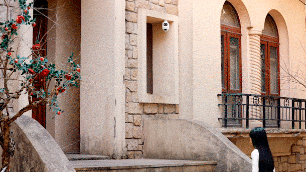 上部カメラと下部カメラのそれぞれが、異なるエリアの不審者を映し出している映像です。2つのカメラのおかげで、広い範囲の不審な動きを見逃しません。