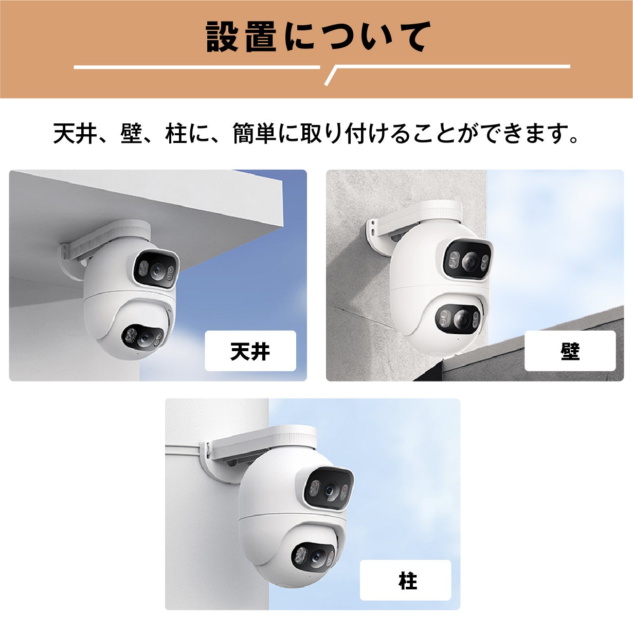 下部カメラは、アプリを通してスマホなどから360°回転させることができ、映し出すエリアをいつでもどこにいても変更できます。(上部カメラは手動で調整となります。)