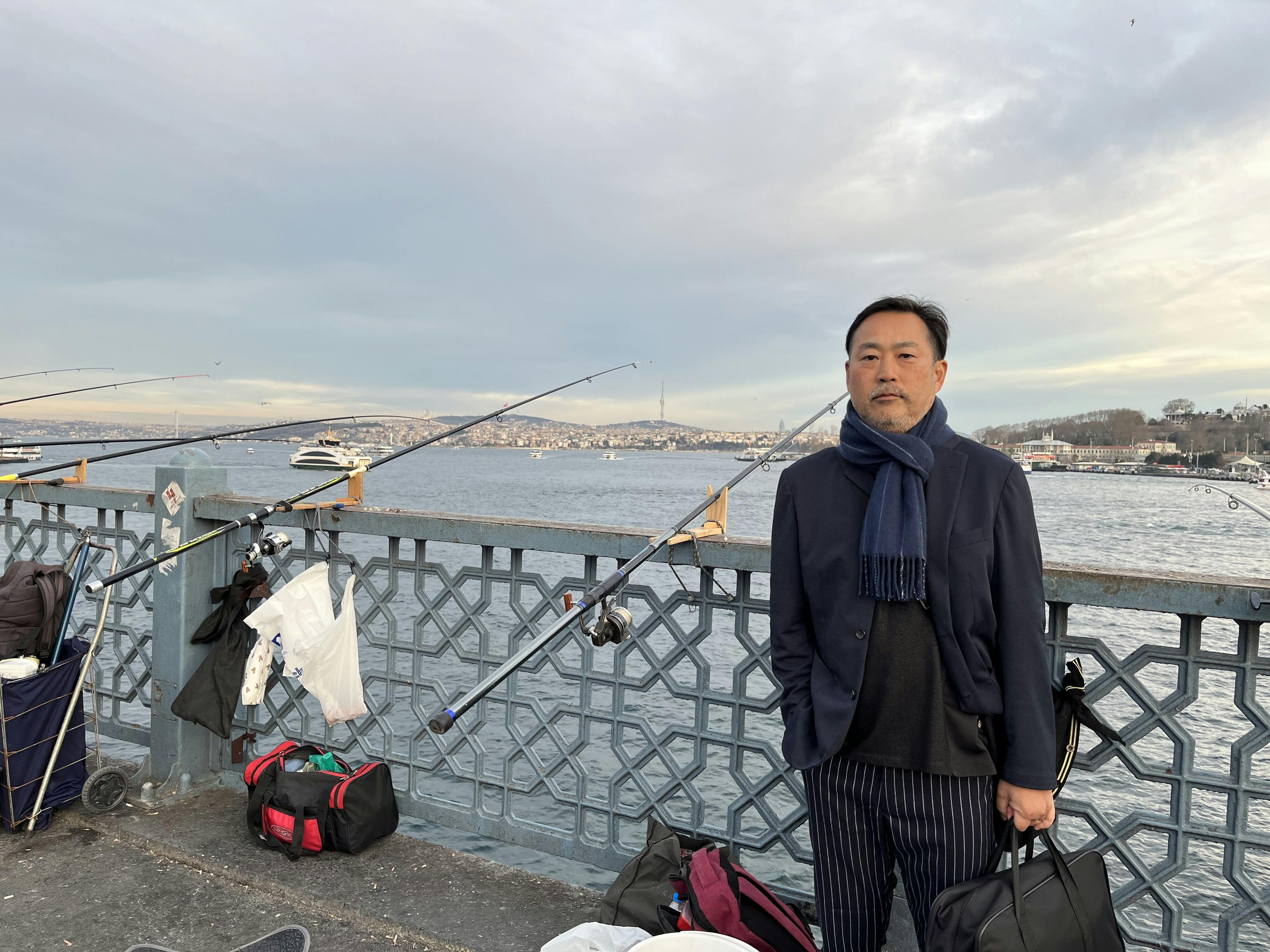 夢のボスポラス海峡に立つ。この後鯖サンドを食べたが、思ったよりおいしくなくて残念。