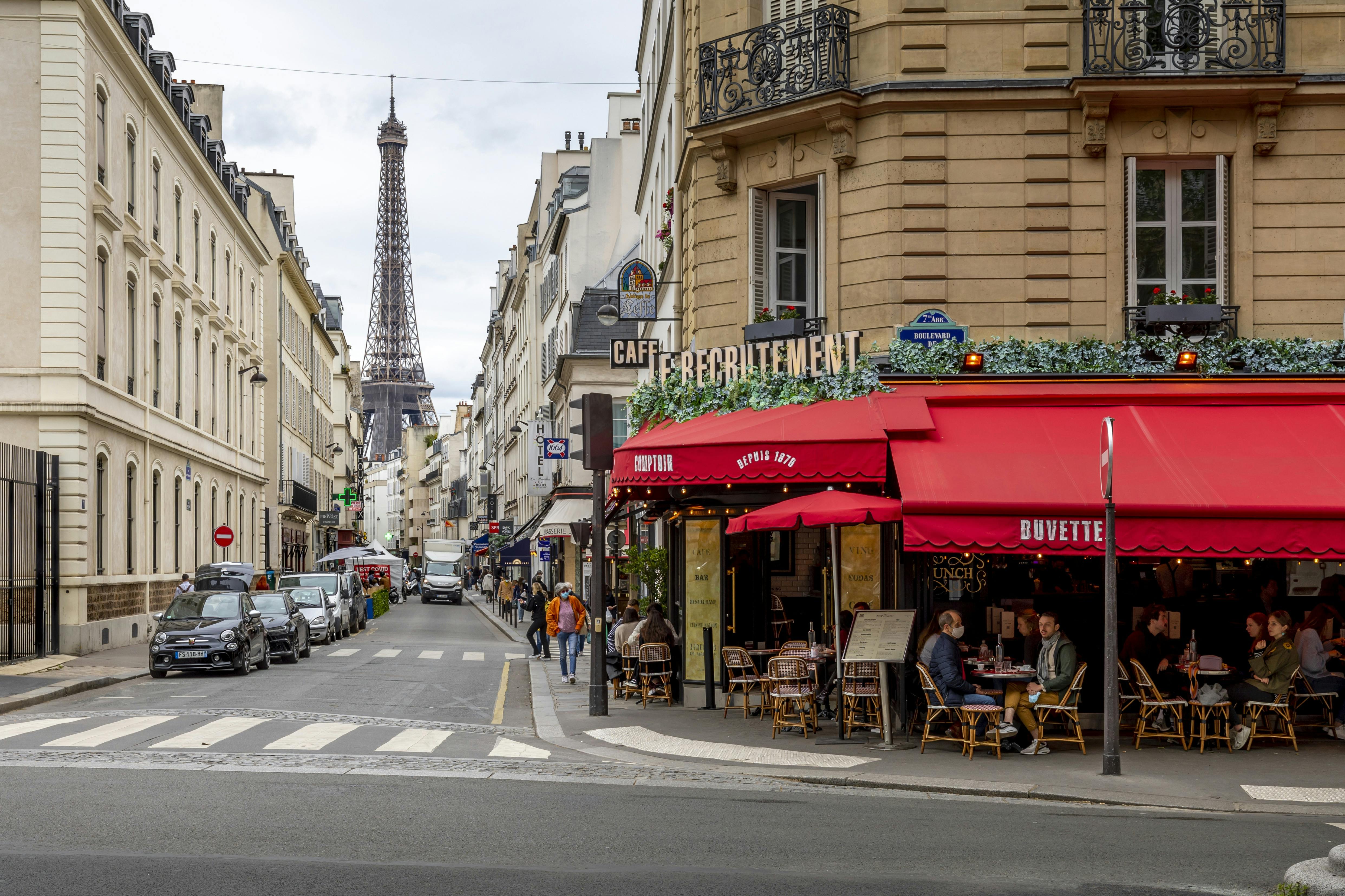 パリの街角には素敵なオープンカフェがたくさん。コンビニはない。水もカフェで購入する。さすが日本のサムライ。エッフェル塔、シャンゼリゼ、凱旋門、ノートルダム大聖堂を弾丸タクシーで周る。