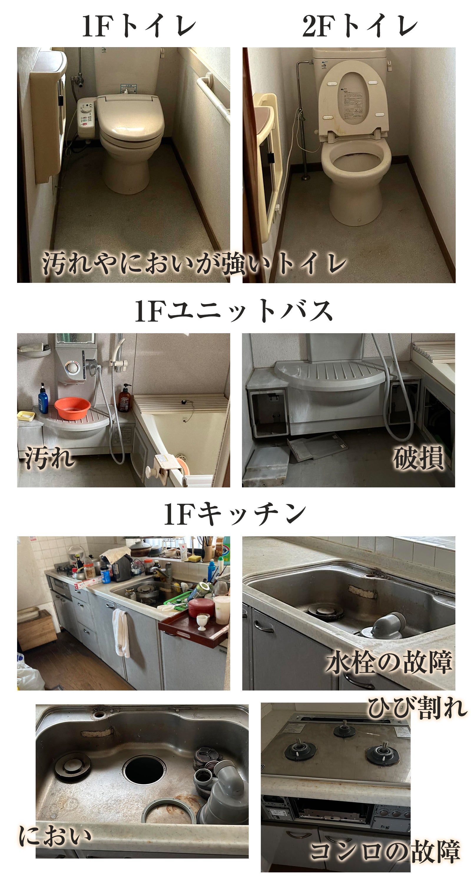 トイレ・キッチン・水回りなどの整備やリノベーションが必要です