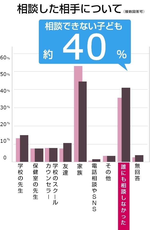 さらに同じく文科省の調査によると、不登校の児童・生徒のうち約4割にあたる11万4217人は、不登校であることを学校内外の専門機関に相談をしていません。