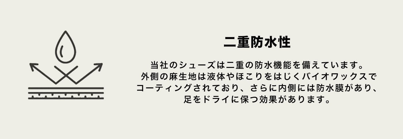 吸水性が低く、天然の優れた撥水効果を備えているヘンプ(麻)素材を使用。
