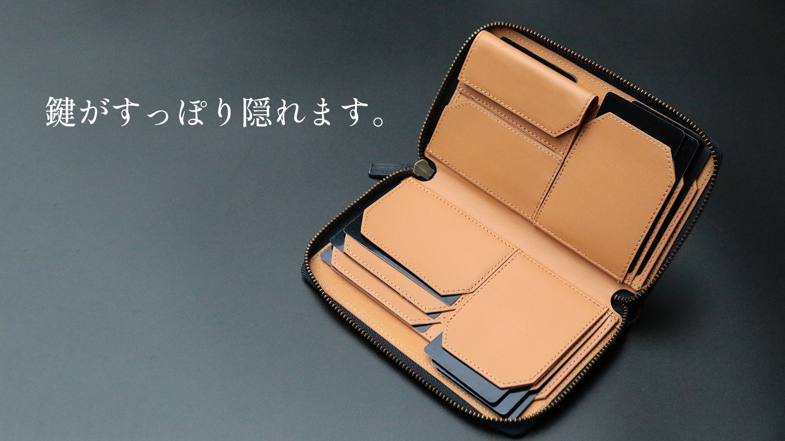 鍵止め自体はフラットなので、カード型のキーを入れたり、通常のカードポケットとしてもご使用可能です。