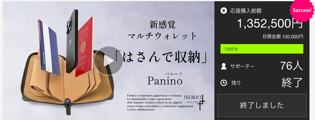 "Panino(パニーノ)"は、以前Makuakeにてプロジェクトを実施、見たこともないような形状のプロジェクトであるにも関わらず、第一弾は1,300,000円以上、第二弾は4,000,000円以上のご支援をいただきました。