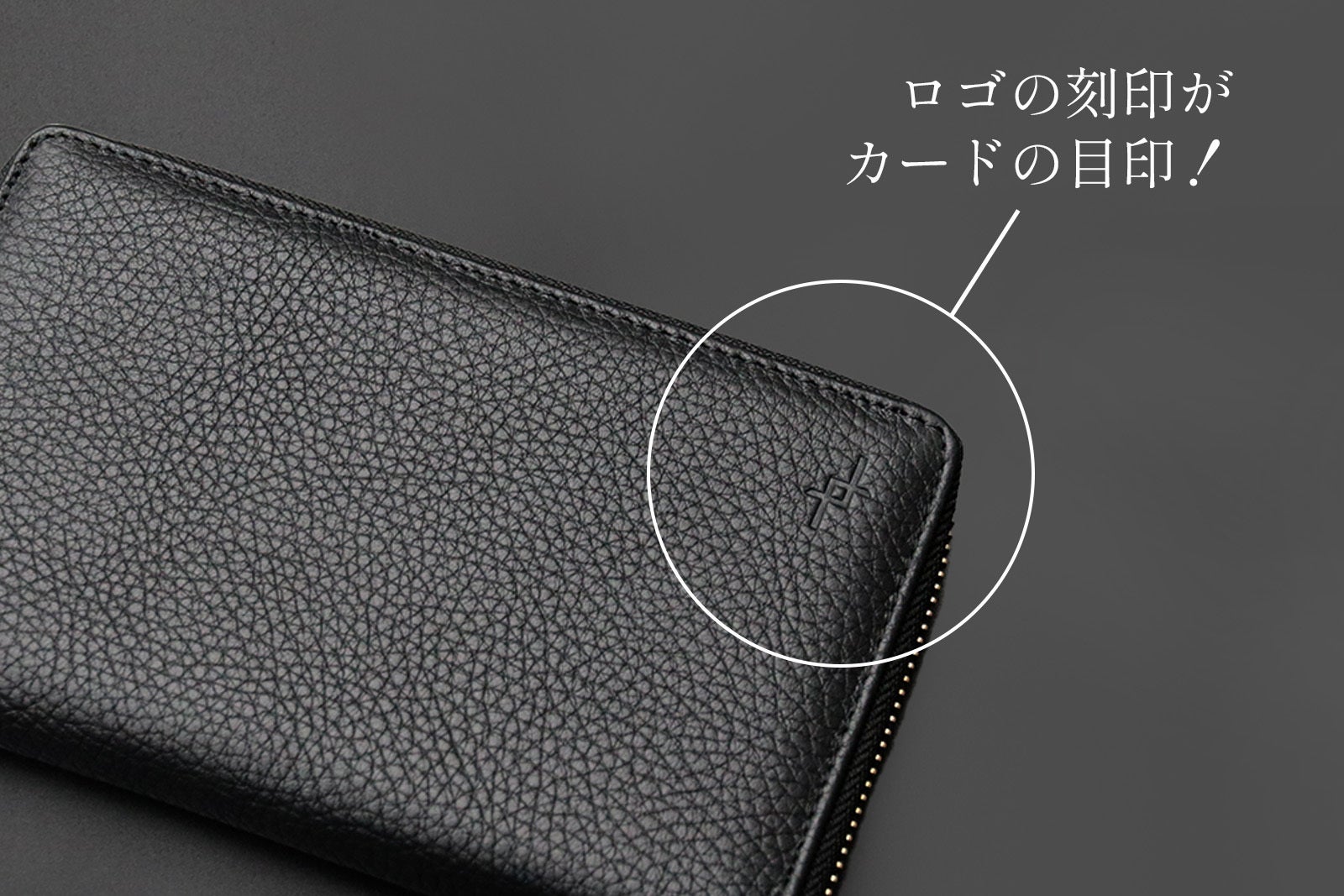 ロゴの刻印の裏側がちょうどカードポケットになるように設計しているため、タッチ決済の際は【ロゴを目標にピッ!】で決済完了です。