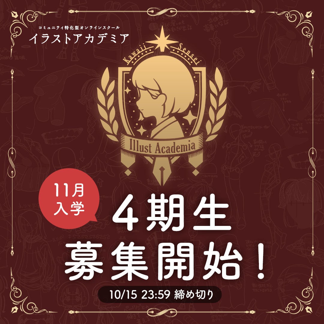 2024/10/11 14:27クラウドファンディングでは応援ありがとうございました!イラストアカデミアも7月までに3期生が入り、生徒の皆さんは日々切磋琢磨しています。生徒数はなんと300名を超え、とても活気のある校舎になっています!校舎のアップデートが進み、成人向けコンテンツに対応した専用校舎がオープンしたり、生徒有志による部活動に先生が顧問につくことでさらに学びのある内容になってきています。授業は座学だけでなく、実践や添削回なども定期的に行われ、楽しく学べる環境が整いました!そしてついに!イラストアカデミア11月入学となる「4期生」の募集を開始致しました!!https://illustacademia.jp/募集期間は10/15(日)23:59までとなります!入学希望の方はWEBサイトから申し込みくださいませ!-KawaiiSensei、およびイラストアカデミア運営チーム もっと見る