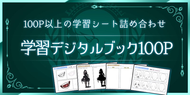 KawaiiSenseiのFANBOXや書籍、イラストアカデミアの授業で配布した宿題シートをベースに過去に配布したもの、リターン用に新しく作成したものをセットにしたデジタルブックです。