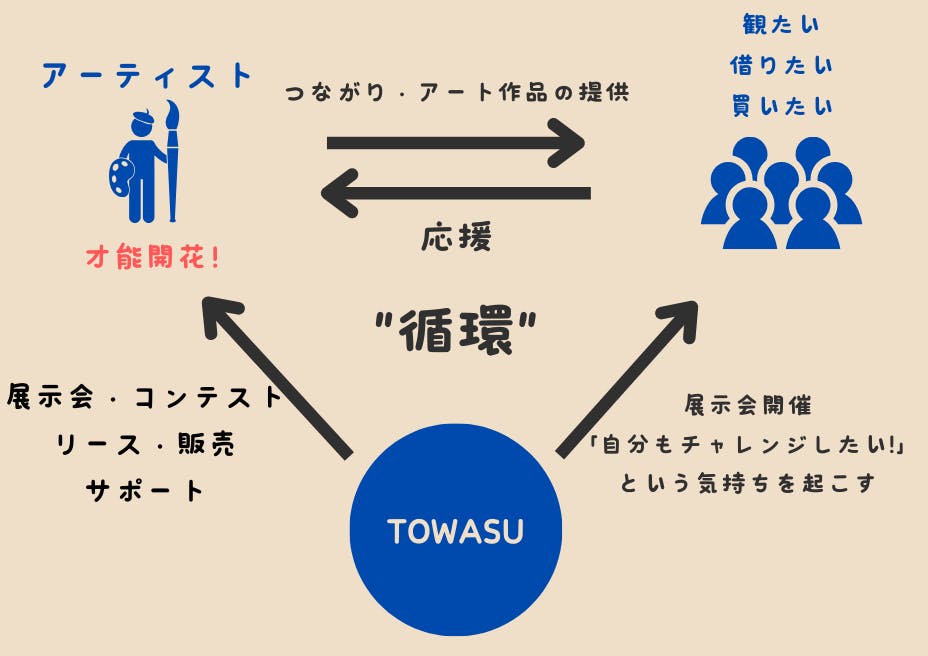 そこで、思いついたのがアーティストを本気で応援する集団「TOWASU」です。