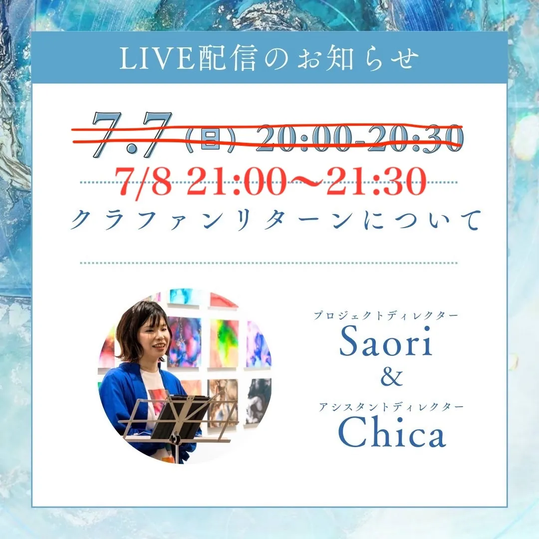 本日予定していた、インスタライブの日程を変更させていただきます。