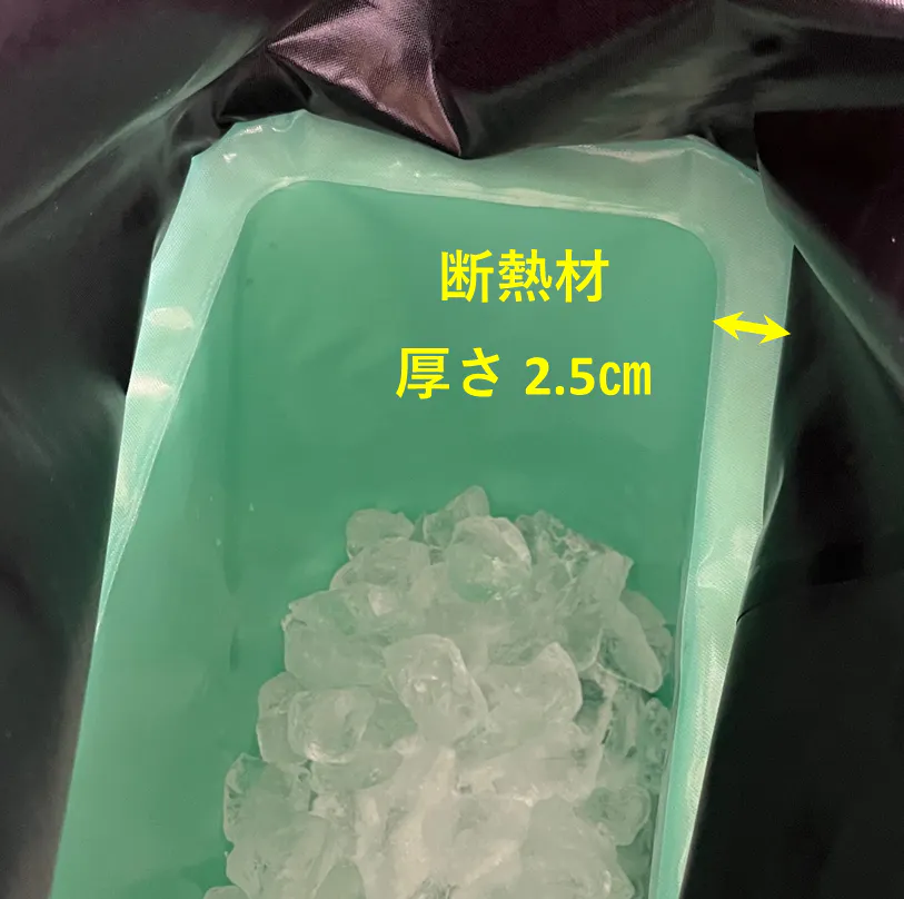 独立気泡フォーム断熱材で空気が通るのを防ぎ、断熱性能を向上させています。また厚い断熱材を使うことで型崩れを防ぎ、中にものが入った状態でも安定して置くことができます。