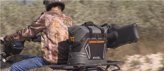 熱可塑性ポリウレタン(TPU)はゴムのような伸縮性をもった柔らかいプラスチックです。ENGELソフトクーラーバッグは様々なシーンでハードに使われることを想定しているため、とても適した素材となっています。840デニールの厚手生地の表面にラミネート加工することで保冷バッグとしての性能を高めています。
