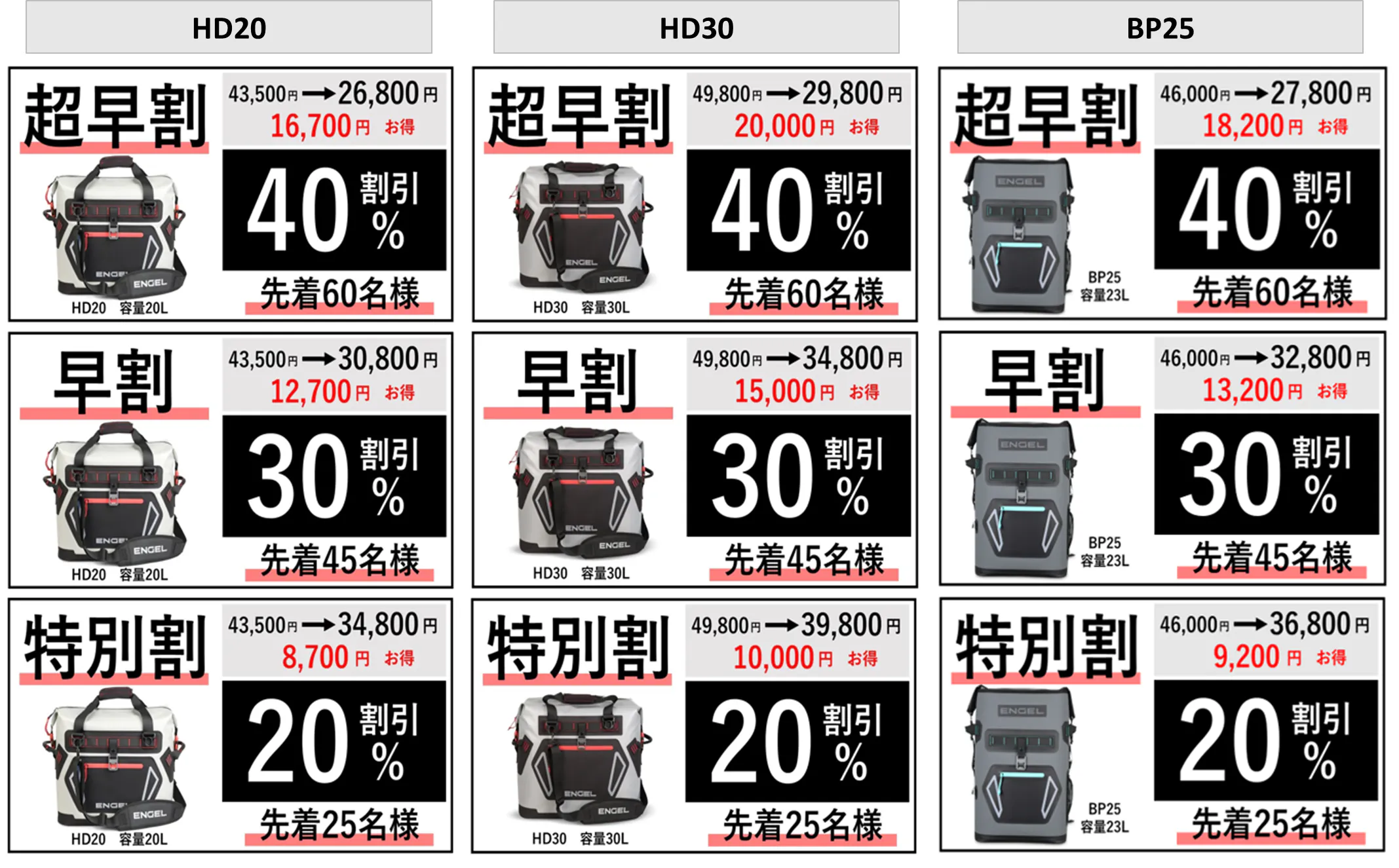 割引:超早割40%OFF、早割30%OFF、特別割20%OFF