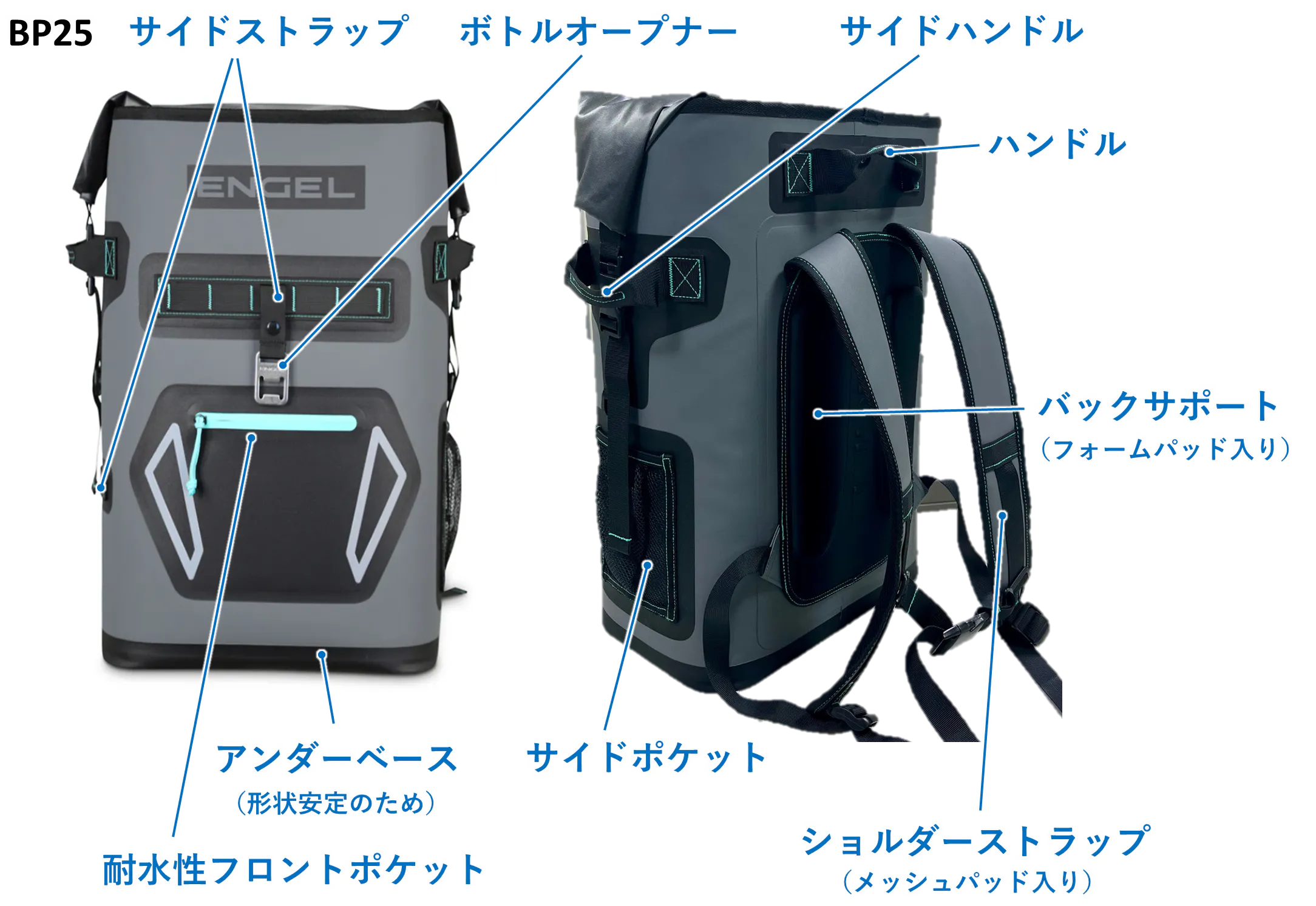 ※BP25のトップの開口部はジッパー式ではなくロールトップ式となりますのでご注意ください。