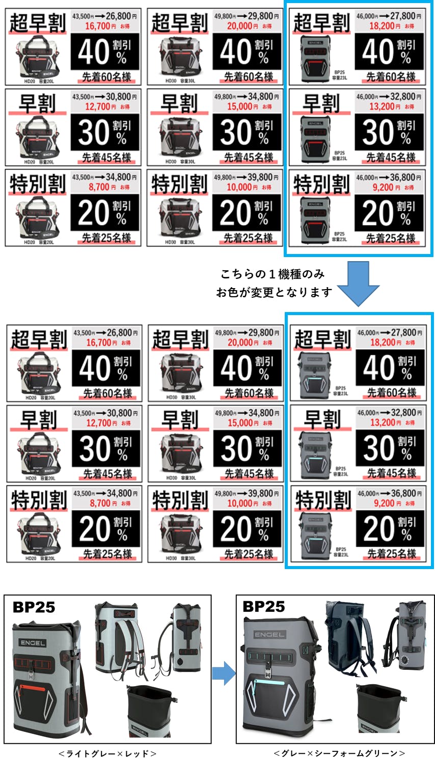 現在募集をしておりますクーラーバッグの1機種のお色が変更になります。